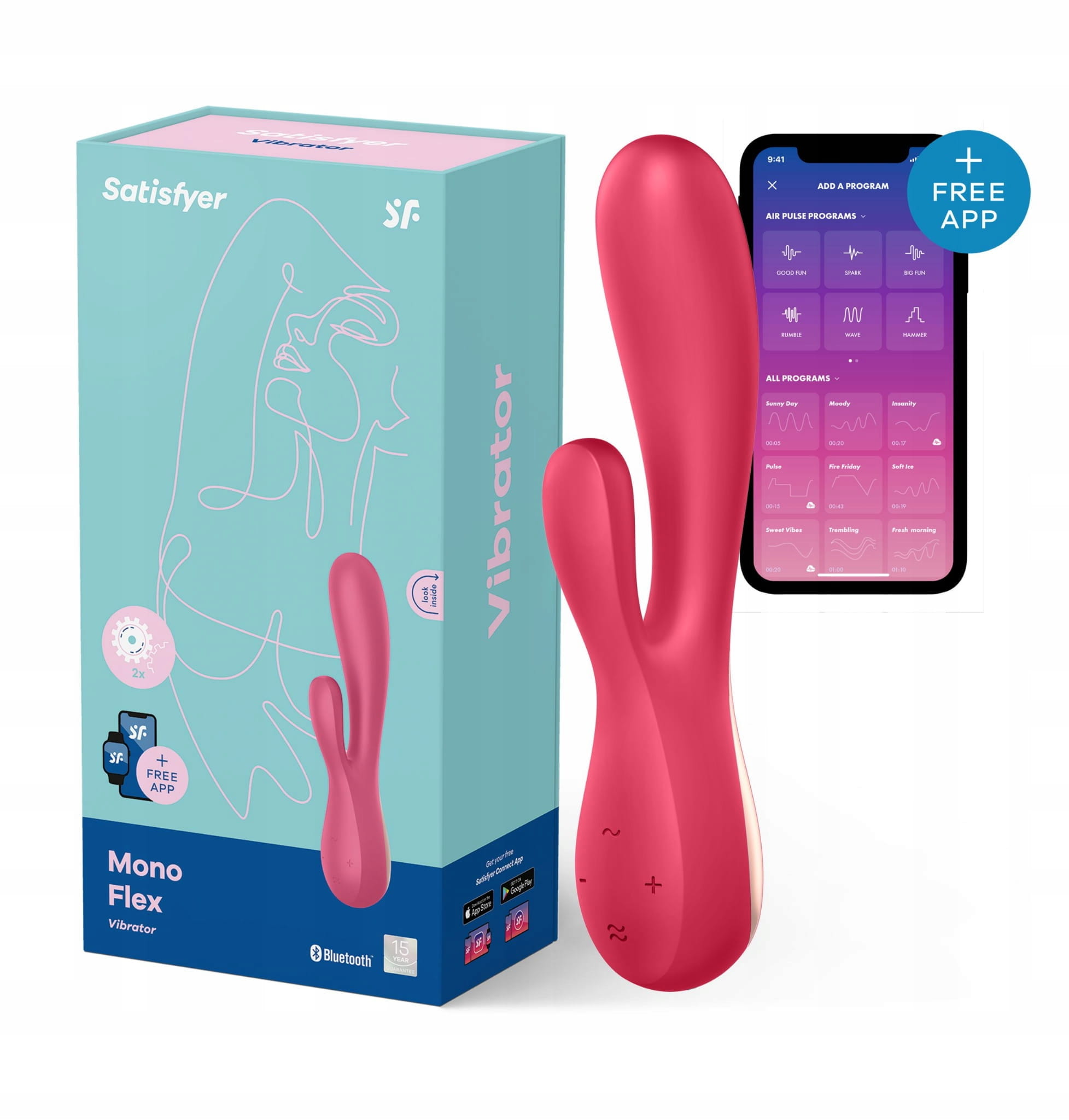 Aplikacja Satisfyer Connect daje nieskończenie wiele opcji i możliwości : za jej pomocą możesz tworzyć nowe programy wibracyjne, wymieniać je z innymi użytkownikami, lub sterować wibratorem MonoFlex w dowolnym miejscu na świecie przez Internet - lub pozwolić komuś innemu sterować gadżetem. Ale to tylko przykładowe możliwości ! Twórz własne wzorce wibracji używając mikrofonu urządzenia. Możesz również przekształcić dźwięki otoczenia w wibracje i przesłać je bezpośrednio do wibratora. Czy masz ulubioną playlistę w Spotify ? Dzięki aplikacji możesz doświadczyć swoich ulubionych piosenek jako gorących rytmów. Wiesz, czego chcesz - Satisfyer wie, na co zasługujesz ! Aplikacja Satisfyer Connect Appjest zgodna z RODO i spełnia wymagania niemieckiej i europejskiej ochrony danych osobowych. Nie gromadzi żadnych danych ani zachowań związanych z użytkowaniem. Oznacza to, że Twoje dane są zawsze w 100% bezpieczne. Aplikacja Satisfyer Connect zdobyła uznaną na całym świecie nagrodę CES TWICE Picks ! Jury CES szczególnie doceniło programowanie haptyczne, detekcję ruchu oraz możliwość tworzenia nowych programów wibracyjnych. Nagroda CES TWICE Picks jest przyznawana tylko najlepszym towarom konsumpcyjnym na świecie. Przenieś swoje życie miłosne na zupełnie nowy poziom i przeżyj przygody jak nigdy dotąd dzięki tej innowacyjnej aplikacji. Materiał : Silikon medyczny, ABS, bez ftalanów Kolor : czerwony Wymiary :