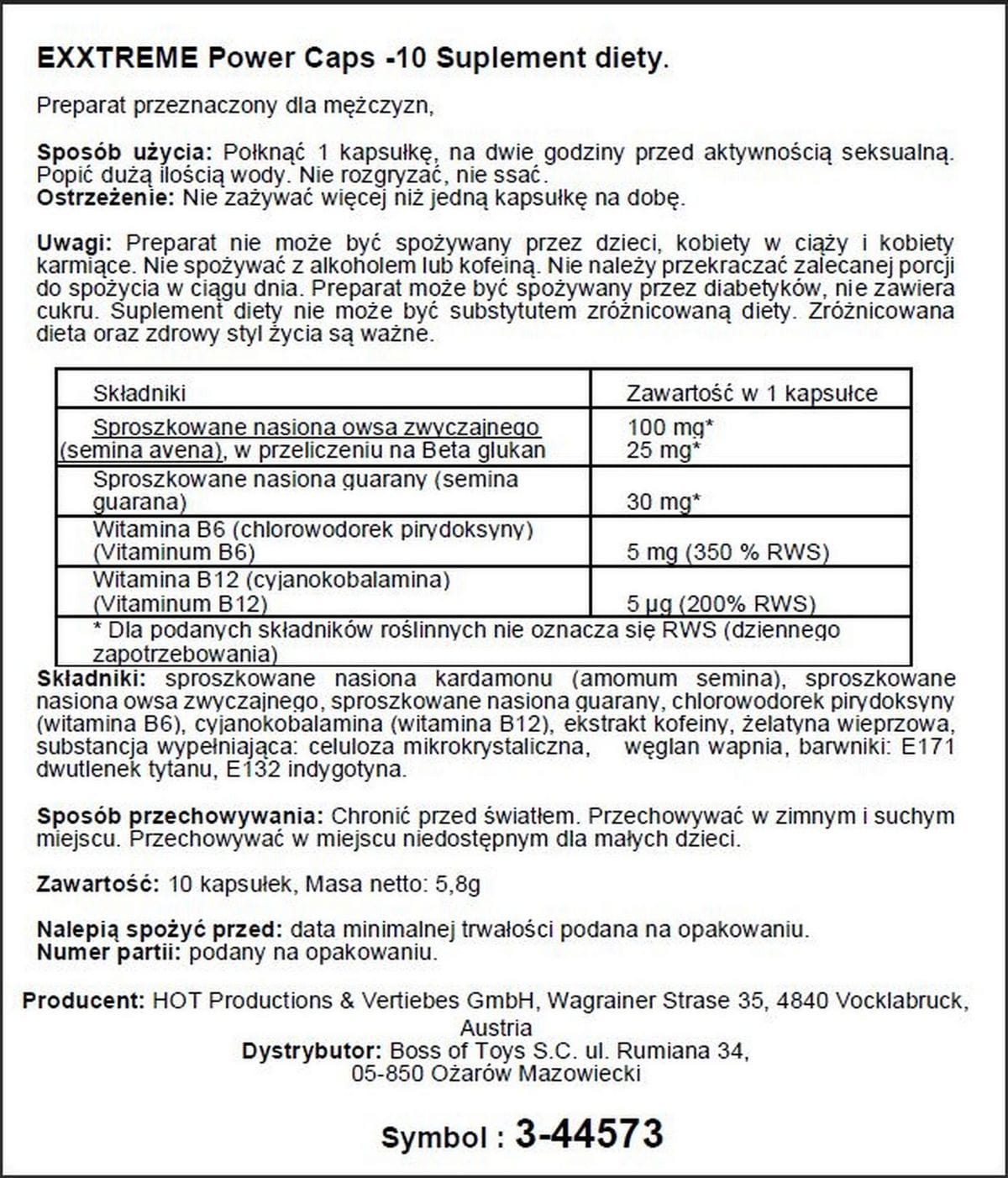 - Proszek z guarany - Kolejnym istotnym elementem HOT eXXtreme Power Caps jest proszek z guarany. Guarana znana jest ze swoich orzeźwiających właściwości oraz zdolności do poprawy percepcji i wytrzymałości. Dzięki zawartości kofeiny, guarana może pomóc w zwiększeniu poziomu energii, co czyni ją idealnym wsparciem dla osób prowadzących aktywny tryb życia.