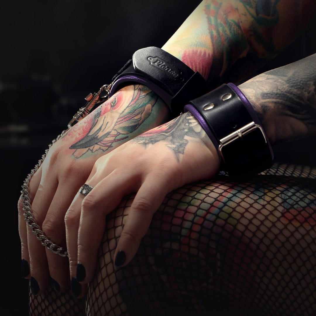 Eleganckie kajdanki przeznaczone do różnych form BDSM, wykonane z wysokiej jakości naturalnej skóry, wytrawianej naturalnymi środkami pochodzenia roślinnego. Elementy pozostające w kontakcie ze skórą są pozbawione niklu. Użycie dwóch kolorów skór powoduje, że kajdanki są pięknym przedmiotem rozbudzającym fantazję erotyczną.