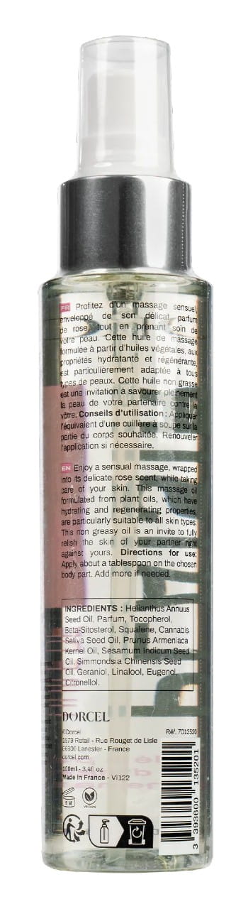 Odkryj świat zmysłowej rozkoszy i romantycznej namiętności z olejkiem do masażu Plaisir Wild Rose od Dorcel. Ten wyjątkowy eliksir otuli Wasze ciała subtelnym, kwiatowym aromatem dzikiej róży, tworząc idealną atmosferę dla intymnych chwil we dwoje. Pozwólcie, aby zapach rozbudził zmysły, a luksusowa formuła zadbała o Waszą skórę, czyniąc ją aksamitnie gładką i gotową na pieszczoty.