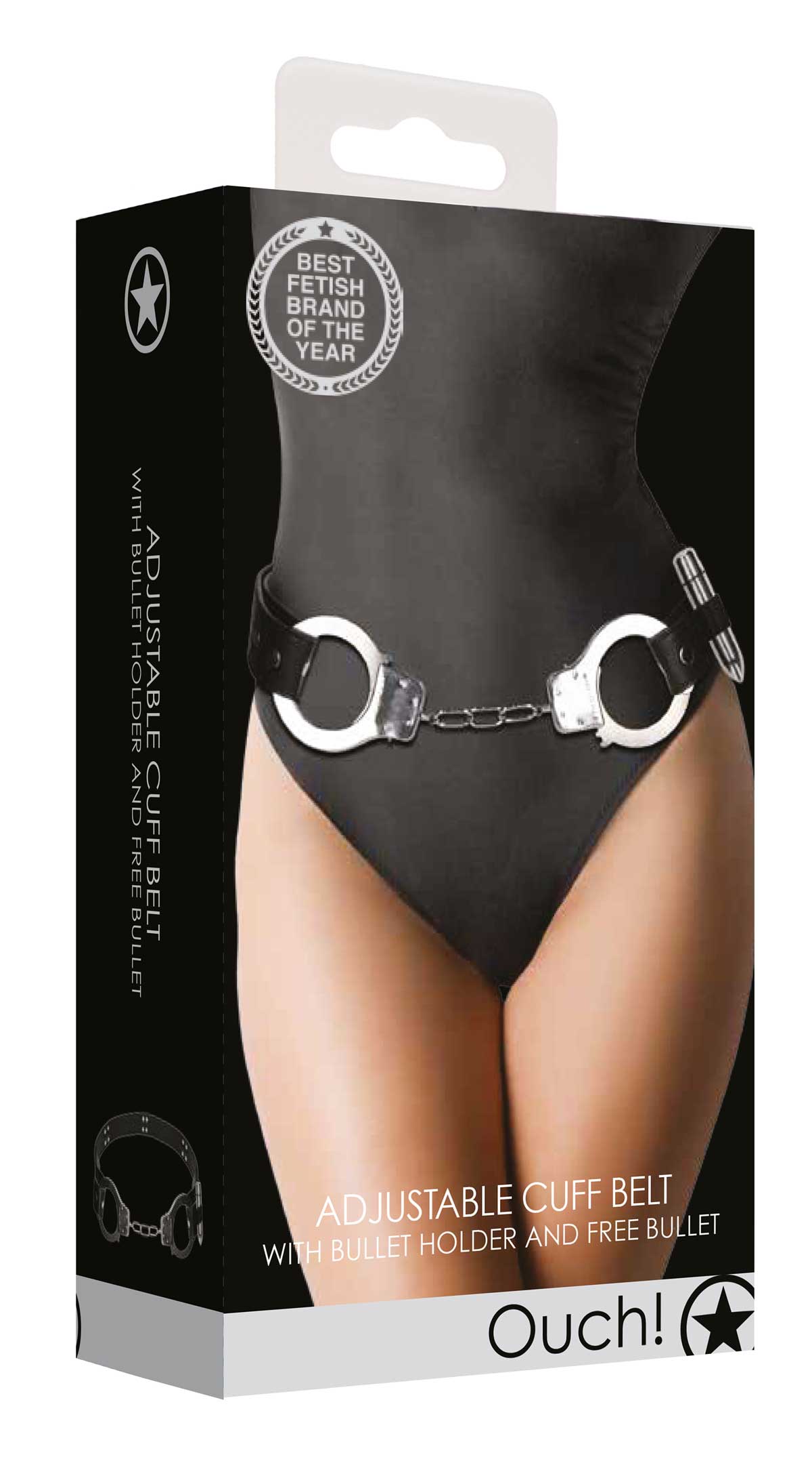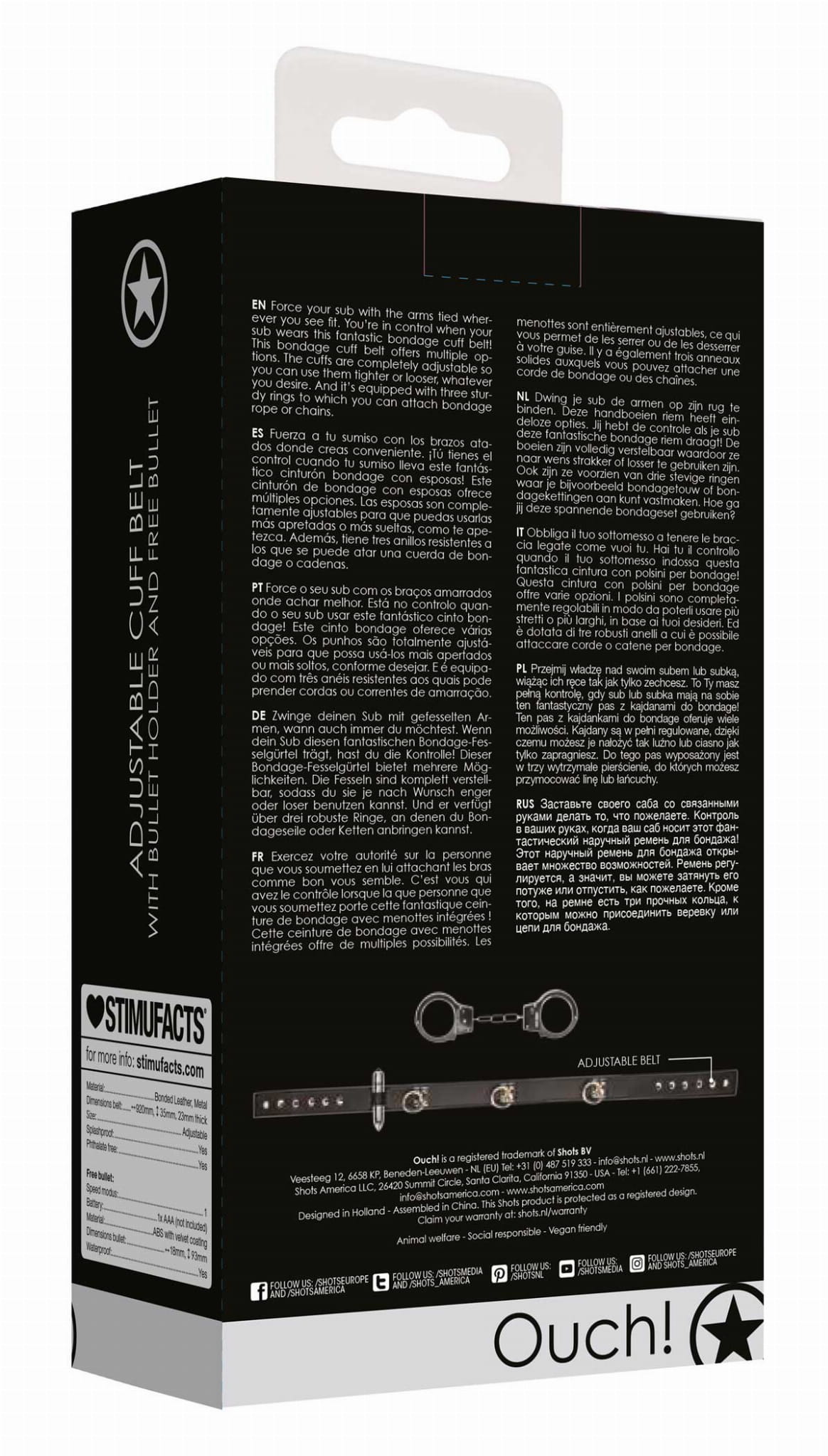 Pas został wykonany ze skóry Bonded, natomiast kajdanki z wysokiej jakości metalu