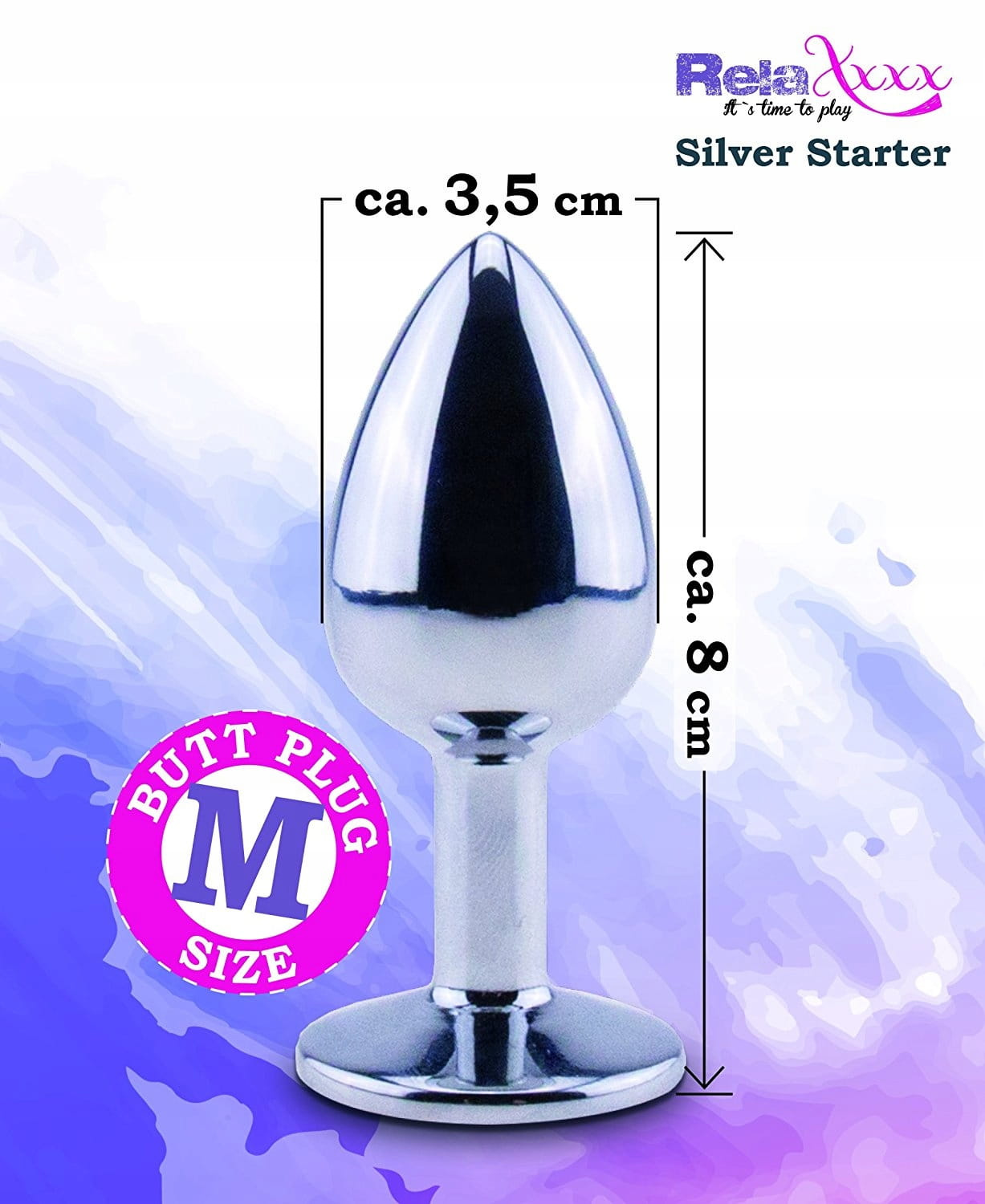 METALOWY KOREK ANALNY RELAXXXX SILVER STARTER - ROZMIAR MGorąca zabawa dla średnio zaawansowanych - ,,Srebrny Starter" w rozmiarze M to idealny rozmiar korka analnego dla średnio zaawansowanych w miłości analnej. Korek reaguje na ciepło - można go schładzać bądź rozgrzewać i jeszcze bardziej zintensyfikować doznania. Gadżet nie tylko dla średnio zaawansowanych, ze względu na stożkowy kształt, a przez to łatwą aplikację, ale i dla zaawansowanych. Korek jest łatwy do czyszczenia i może być przechowywany w aksamitnej torebce, która jest dołączona do opakowania. Zaleca się stosowanie korka analnego wraz z lubrykantem np. Smoothglide® ( próbkę lubrykantu znajdziesz w opakowaniu ). Kolor : srebrny / niebieski Wymiary :
