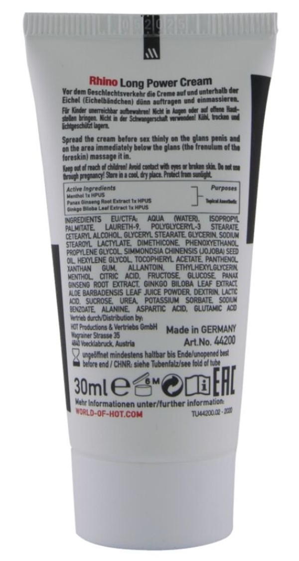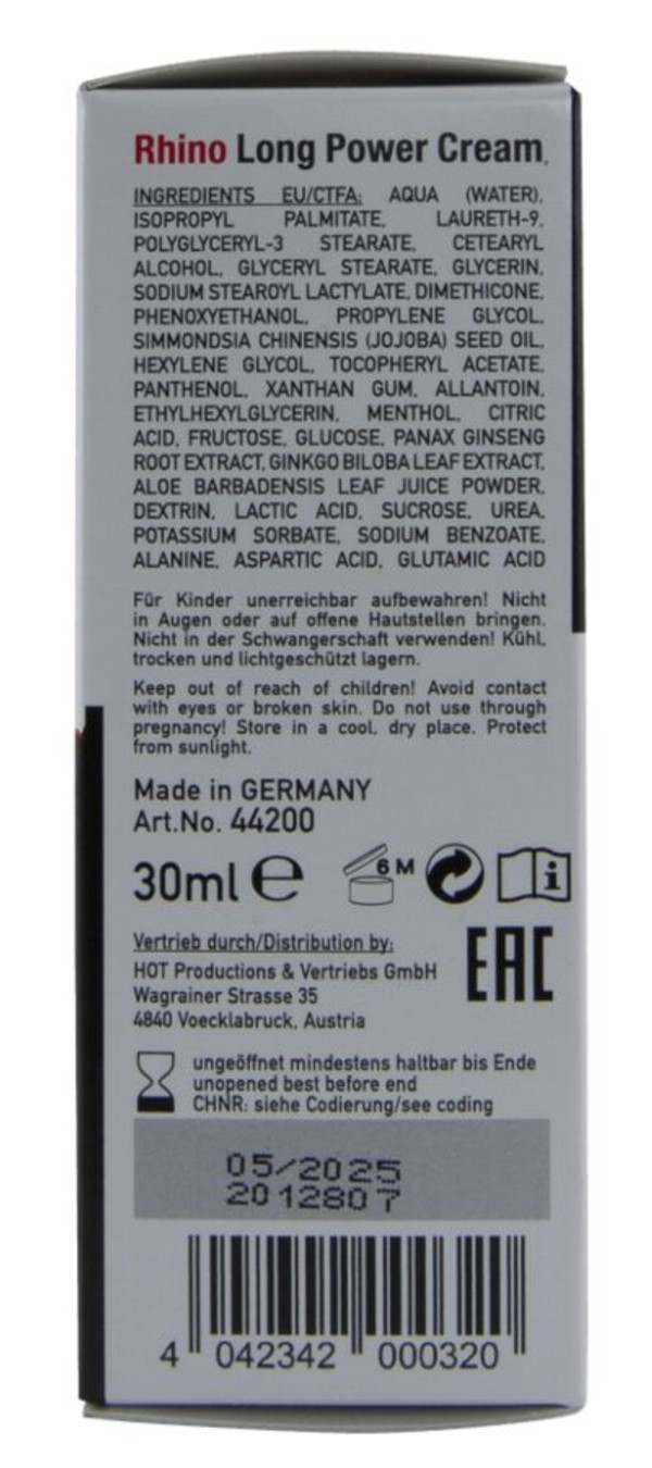 Rhino Long Power Cream 30ml – Przejmij Kontrolę i Wydłuż Przyjemność