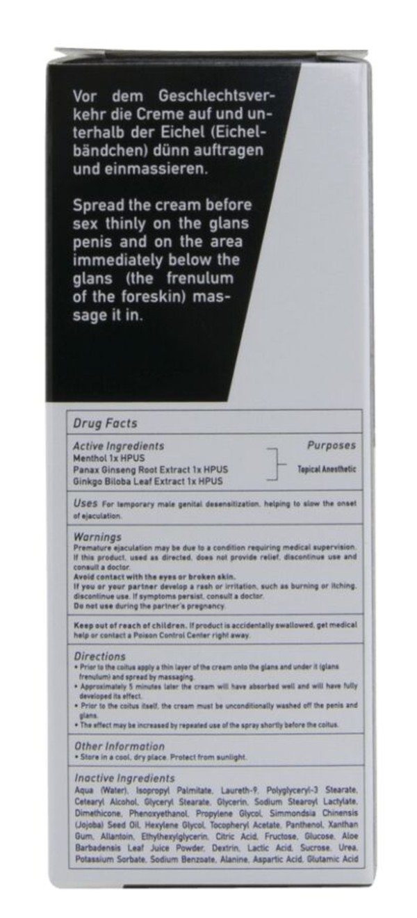 Sposób użycia: Niewielką ilość kremu nanieś na żołądź i wędzidełko około 5 minut przed planowanym zbliżeniem. Delikatnie wmasuj aż do całkowitego wchłonięcia. Dla wzmocnienia efektu, aplikację można powtórzyć.