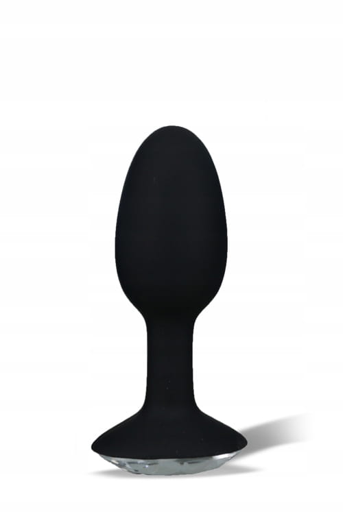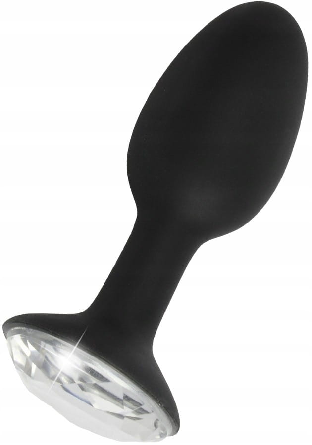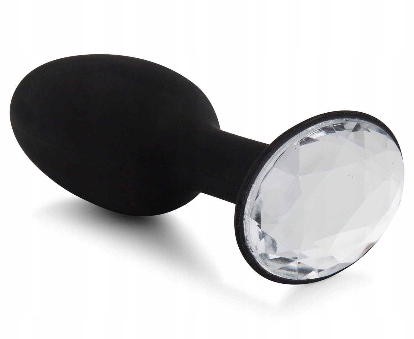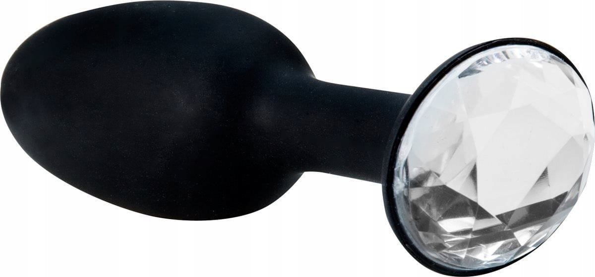 Silikonowy czarny korek analny wykończony błyszczącym białym "diamentem".