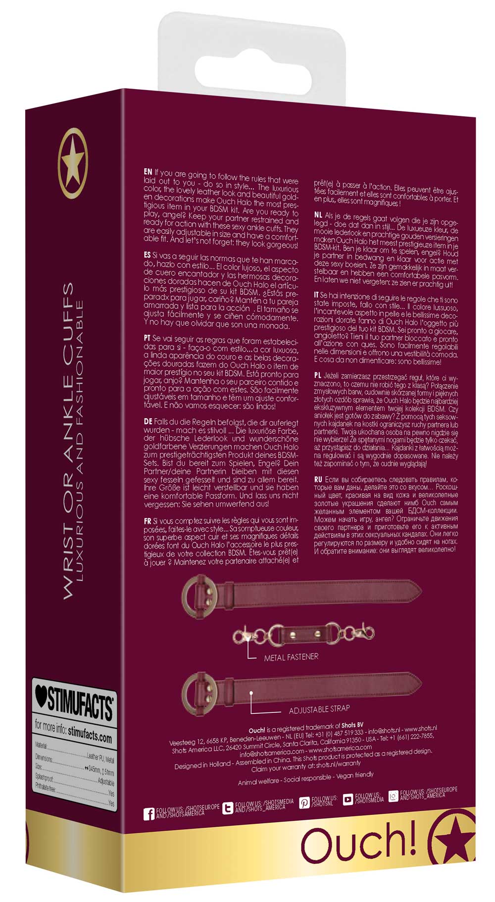 Połączenie zmysłowych barw, cudownie skórzanej formy i pięknych złotych ozdób sprawia, że Ouch Halo będzie najbardziej ekskluzywnym elementem Twojej kolekcji BDSM.