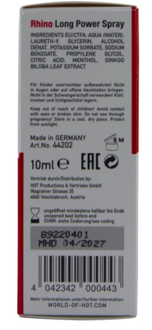 Spray Dla Mężczyzn Rhino Long Power 10ml Kontrola I Wytrzymałość