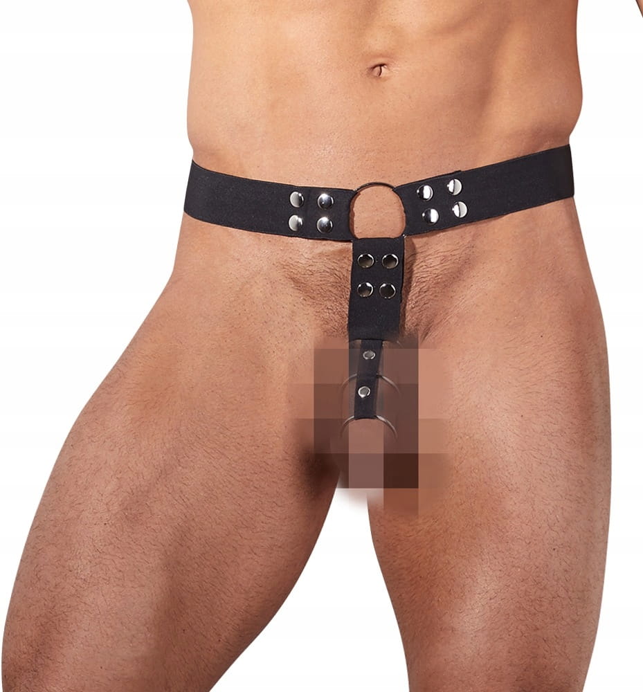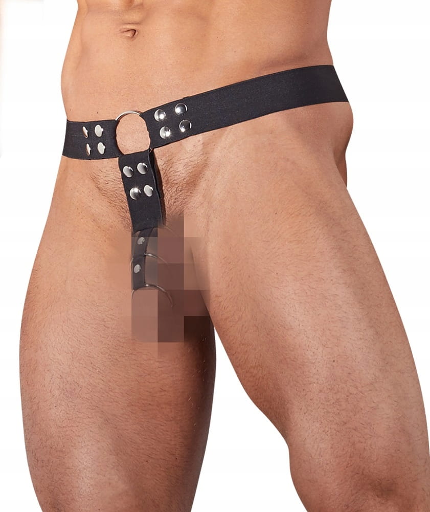Męski penis i jądra powinny przejść przez 3 metalowe pierścienie ( Ø od 4 do 5 cm) z przodu - Twój największy atut będzie doskonale eksponowany !