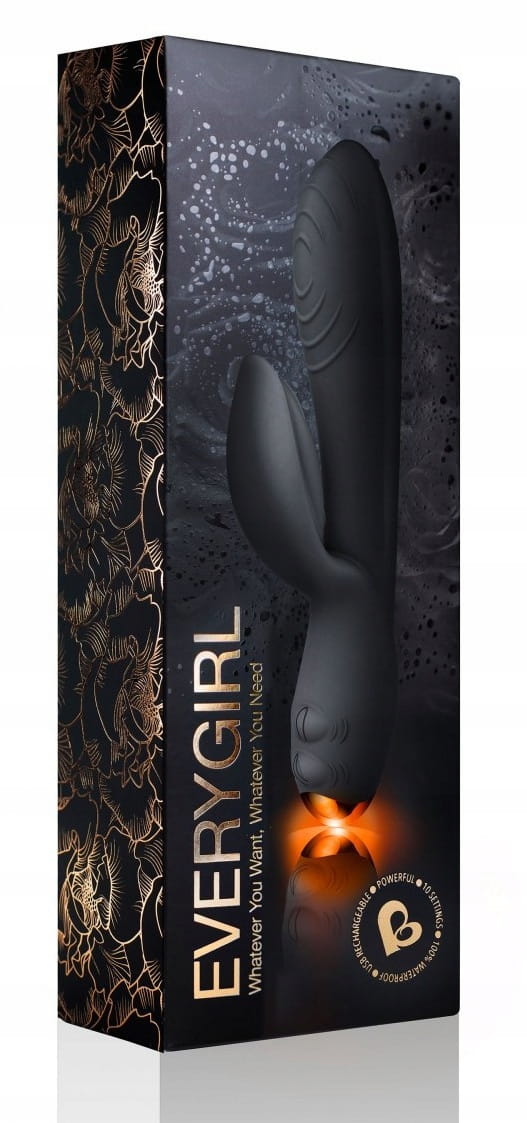 EveryGirl - Whatever you Want, Whatever you Need ! Uwodzicielsko piękny i elegancki wibrator, który spełnia wszystkie potrzeby i pragnienia każdej kobiety. Zdecydowanie EveryGirl to znów udana i kolejna propozycja brytyjskiej firmy Rocks-Off Limited - jednego z wiodących producentów artykułów erotycznych na świecie i numer jeden na rynku europejskim, ceniony za innowacyjność i troskę o wysoką jakość wszystkich swoich produktów. Wszystko, co wychodzi spod szyldu tej brytyjskiej marki charakteryzuje elegancki design i wysoka funkcjonalność. Przygotuj się więc na długi wieczór, bo z doświadczenia wiemy, że skończysz zabawę dopiero wtedy, gdy wypróbujesz wszystkie 10 rodzajów wibracji i to aż w 2 trybach ! Znakomity design i aksamitny, miękki silikon otaczają potężne, 2 niezależnie pracujące silniki - jeden w stymulatorze łechtaczki a drugi w wale wibratora. Zapewnią najwyższą satysfakcję z każdego pulsującego koloru bijącego serca LED, gdyż zmiana koloru diody jest zsynchronizowana z wibracjami gadżetu. Wibrator jest całkowicie bezpieczny dla ciała i przyjemny w dotyku, bo wykonany z aksamitnego i miękkiego silikonu medycznego. A jedno pełne, ładowanie akumulatora poprzez magnetyczny kabel USB pozwoli Ci na 3 godziny przyjemności. EveryGirl jest w 100% wodoodporny, więc nie zawahaj się używać go pod prysznicem lub w wannie. Podwójna stymulacja na pewno dostarczy Ci silnych doznań !