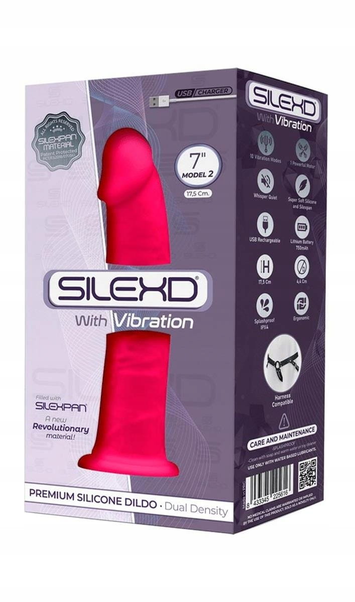 WIBRUJĄCE SILIKONOWE DILDO Z RDZENIEM SILEXPAN I EFEKTEM PAMIĘCI - 7"Prawdziwa radość ! Realistyczne dildo pokryte wyjątkowym silikonem medycznym typu premium o podwójnej gęstości ( Memory Silicone ) z rdzeniem wykonanym z materiału SILEXPAN® i efektem pamięci. Indywidualnie elastyczne : bez względu na to, jak zostanie ściśnięte i zgięte, zachowuje pożądany kształt. Naturalne dildo w kolorze różowym na całej swej powierzchni ma fakturę przypominającą prawdziwego penisa - realistyczny żołądź, wyraźnie zaznaczone i lekko wypukłe żyły. Gadżet doskonale zaspokoi Cię dopochwowo i analnie, a niewielka ilość lubrykantu nawilżającego na bazie wody dostarczy dodatkową dawkę przyjemności. Naturalne dildo ma silną przyssawkę, która pozwala na dziką jazdę bez użycia rąk. Po prostu przymocuj przyssawkę do gładkiej i płaskiej powierzchni. A teraz rozpocznij zabawę dzięki pracy 1 mocnego silnika w 10 różnych trybach wibracji po prostu naciskając przycisk ! Dzięki rdzeniu wykonanemu z SILEXPAN®, dildo jest mocne i sztywne w dotyku a jednocześnie przyjemnie elastyczne. Kompatybilne z uprzężami typu strap-on. Kiedy dildo zostanie ściśnięte lub zgięte, pozostanie w tym stanie przez pewien krótki czas ! Ponadto materiał silikonu reaguje również na wysokie temperatury ( staje się bardziej miękki i plastyczny) i niskie temperatury ( twardnieje ). Dildo umyjesz letnią wodą i łagodnym mydłem, oraz środkiem do czyszczenia zabawek erotycznych typu ToyCleaner. Więcej zabawy w seksie i wiele zmysłowych godzin dzięki bryzgoszczelności dilda ( klasa wodoodporności IPX4 ). Materiał : SILEXPAN® z podwójną powłoką Silikonu medycznego ( Memory Silicone ), bez ftalanów Kolor : różowy Wymiary :