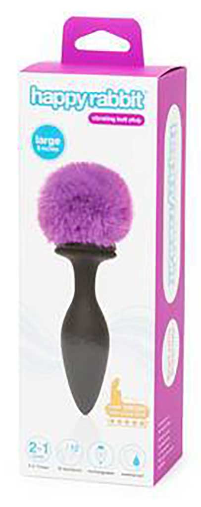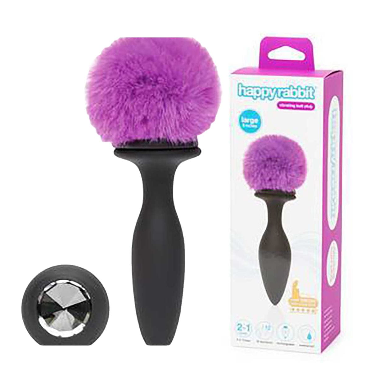 Wibrujący ozdobny korek analny - Happy Rabbit Rechargeable Vibrating Butt Plug Black & Purple