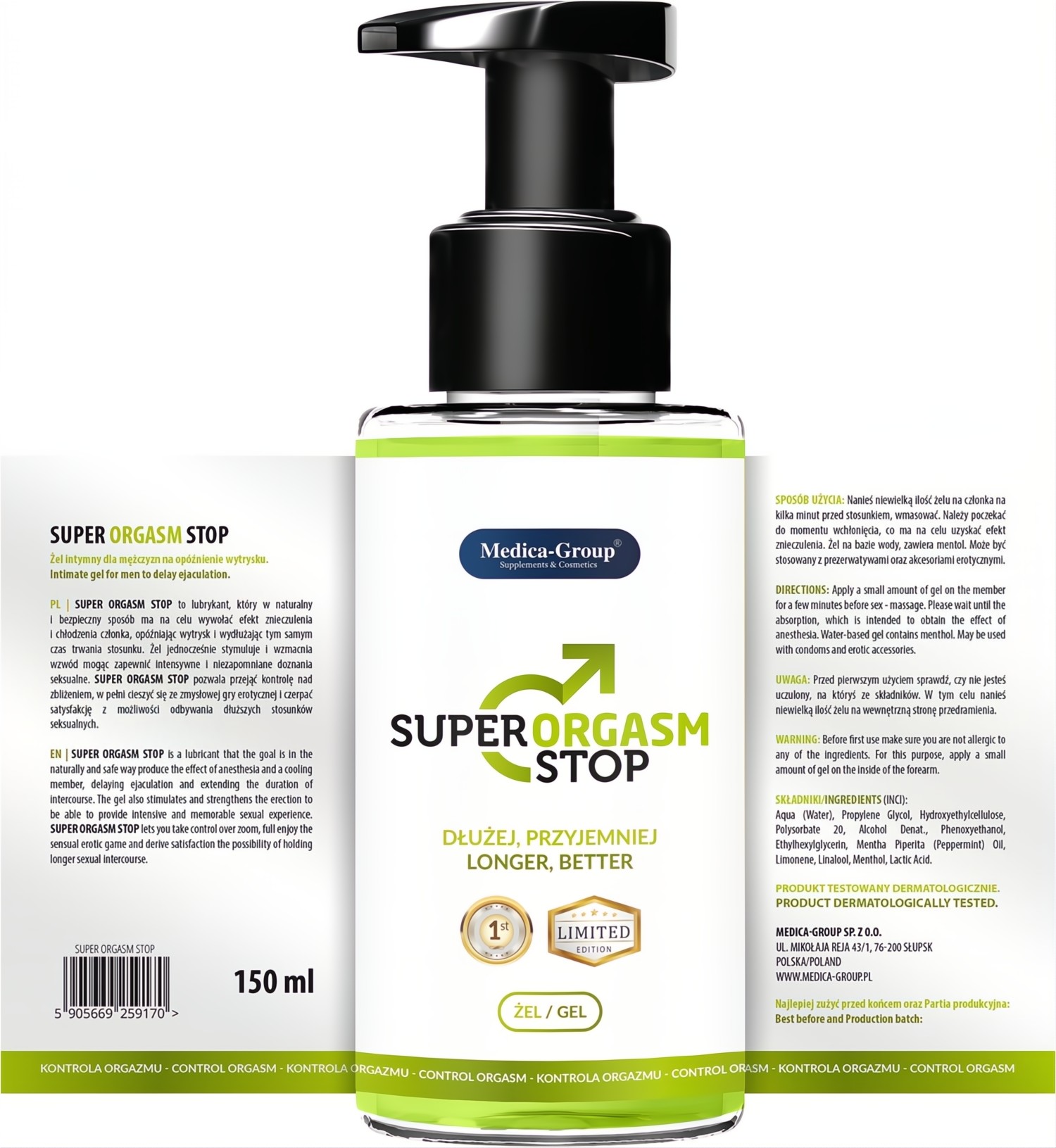 Czy marzysz o dłuższych, bardziej namiętnych chwilach bliskości? Chcesz przejąć pełną kontrolę nad swoim finałem i dać swojej partnerce (lub partnerowi) niezapomnianą rozkosz? Żel Super Orgasm Stop 150 ML to Twój sekretny sojusznik w sypialni. Stworzony dla mężczyzn, którzy pragną wydłużyć stosunek bez utraty intensywności doznań, ten innowacyjny produkt łączy skuteczność z przyjemnym uczuciem chłodzenia.