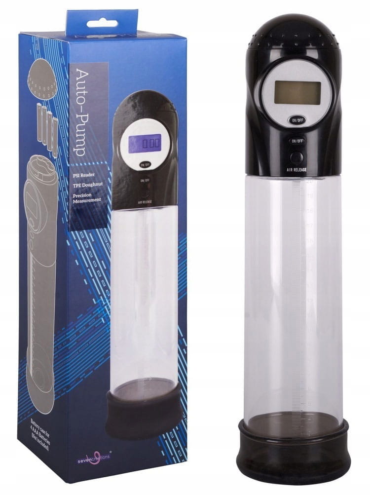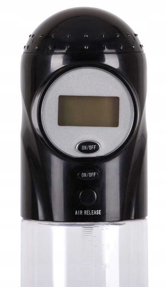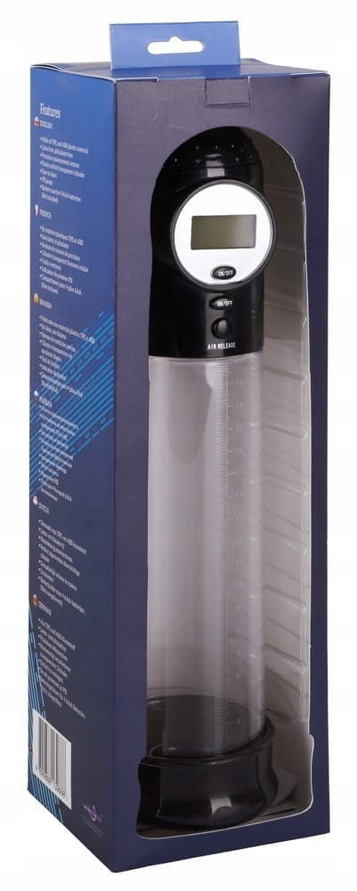 AUTOMATYCZNA POMPKA POWIĘKSZAJĄCA PENISA Ciesz się ekscytującym widokiem, gdy twój penis staje się pełniejszy i mocniejszy dzięki automatycznej pompce do penisa! Zobacz, jak wytwarza się podciśnienie w przezroczystym cylindrze o kolorze dymu, a dzięki centymetrowej skali możesz także ocenić postęp treningu. Jeśli chcesz zacząć od treningu próżniowego, wystarczy włączyć pompę na czarnym panelu sterowania za pomocą przycisku ON / OFF, jesteś gotowy do pracy! W razie potrzeby można odczytać ciśnienie zmierzone w PSI w dowolnym momencie za pomocą oddzielnie włączonego wyświetlacza. Aby zwolnić ciśnienie z pompy, po prostu naciśnij przycisk POWRÓT POWIETRZA. Trening dla większego i silniejszego penisa nigdy nie był tak prosty! Wymiary:
