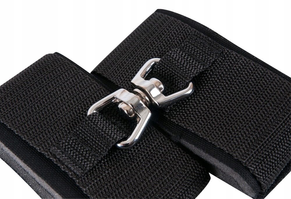 Kajdanki zapinane na rzep połączone są ze sobą praktycznym obrotowym zapięciem i skutecznie ograniczają swobodę ruchów.