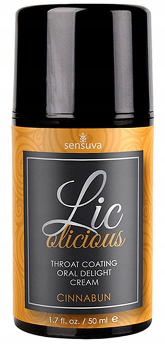 Sensuva Lic-O-Licious Cinnabun to kremowy balsam przeznaczony do stosowania podczas seksu oralnego. Ma kremową formułę, co sprawia, że jest delikatny, a pieszczoty stają się jeszcze przyjemniejsze. Oleista konsystencja balsamu o smaku ciastka cynamonowego pozostaje obecna w jamie ustnej znacznie dłużej niż klasyczne żele doustne dostępne na rynku. Balsam doskonale pokrywa język i gardło, przez co zrobienie zmysłowego fellatio jest dla kobiety bardziej komfortowe i pozwala jej na głębsze pieszczoty penisa. Balsam Sensuva Lic-O-Licious Cinnabun pozbawiony jest gliceryny, parabenów, glutenu oraz składników pochodzenia zwierzęcego. Dzięki temu jest bezpieczny dla skóry i może być stosowany nawet codziennie. Cechy: