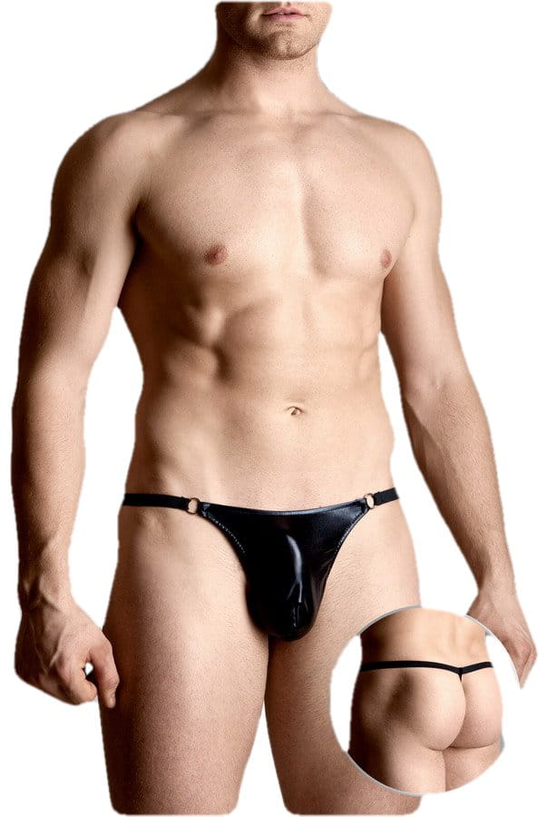 CZARNE BŁYSZCZĄCE STRINGI MĘSKIE 4487 ROZMIAR S/L