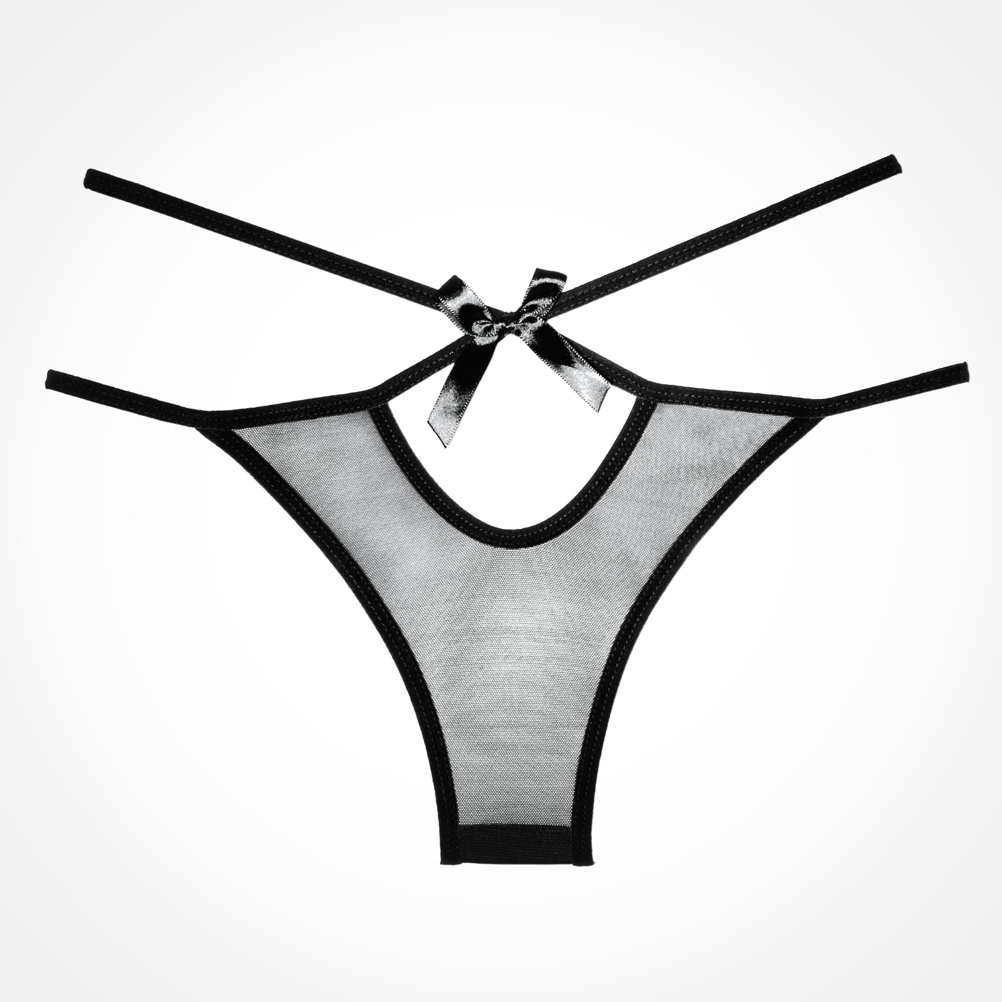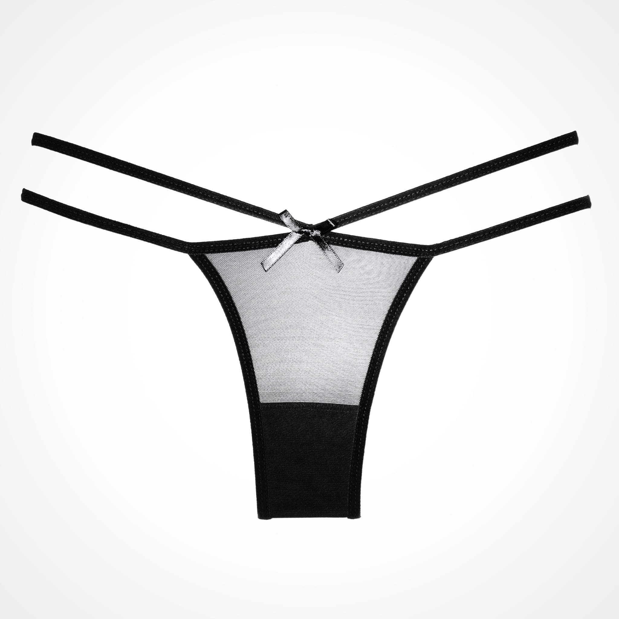 Model ,,Naughty Vanilla" - wspaniałe, lekko przezroczyste stringi wykonane z drobnej i gęstej siateczki z delikatnymi, modnymi paseczkami. Z przodu i z tyłu bielizny zalotna kokardka.