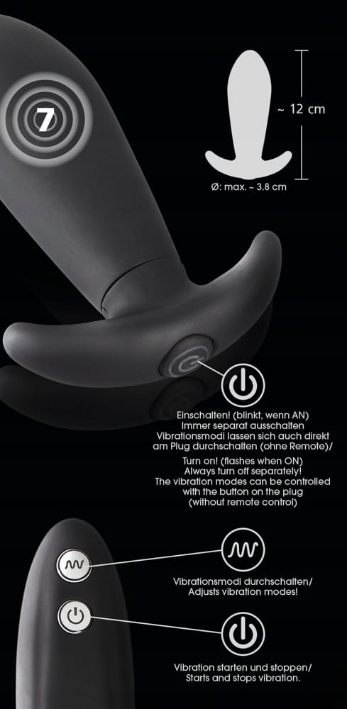 Użyj przycisku na wtyczce lub dołączonym pilocie zdalnego sterowania, aby włączyć wybrany tryb wibracji lub dać partnerowi do ręki pilot sterujący i niech wstrząsną Tobą jego drgania ...