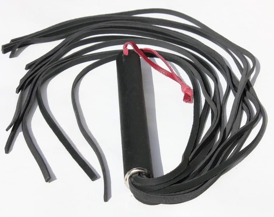 CZARNY SKÓRZANY PEJCZ Z MASYWNĄ RĄCZKĄ