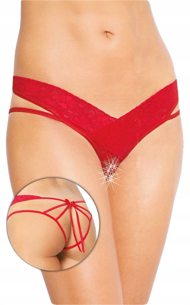 CZERWONE KORONKOWE FIGI Z OTWARTYM TYŁEM ROZM. M/L