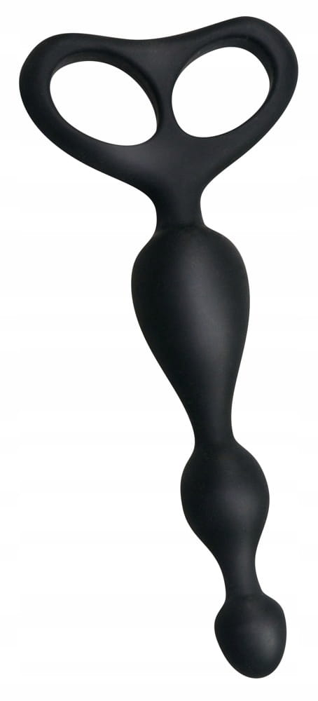 Czarny korek analny wykonany z różnej wielkości kropli stymulacyjnych.