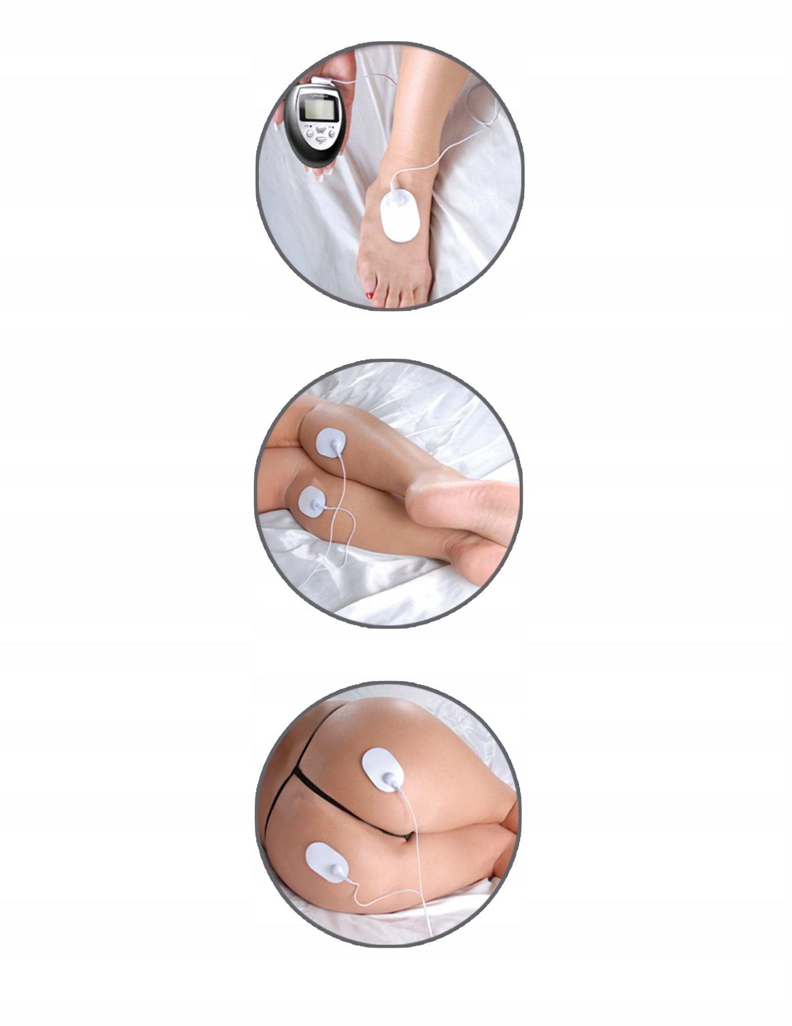 Elektrody są samoprzylepne i przymocowane za pomocą zatrzasków. Łatwo się je czyści po zabawie erotycznej środkiem do czyszczenia zabawek erotycznych i letnią wodą.