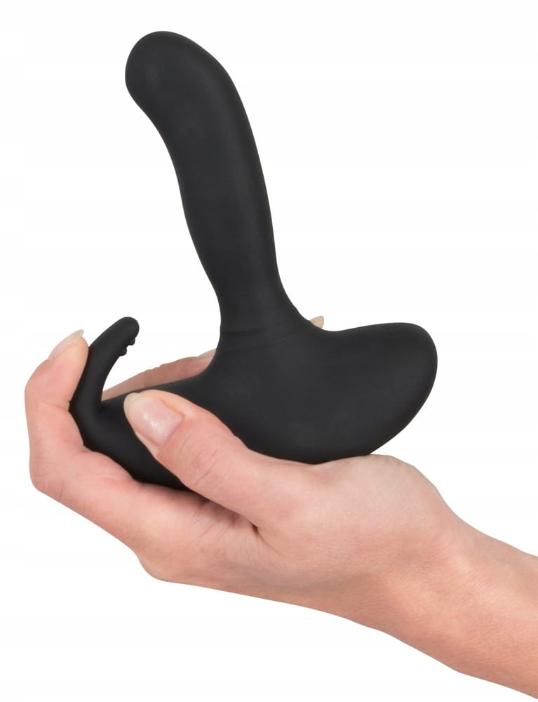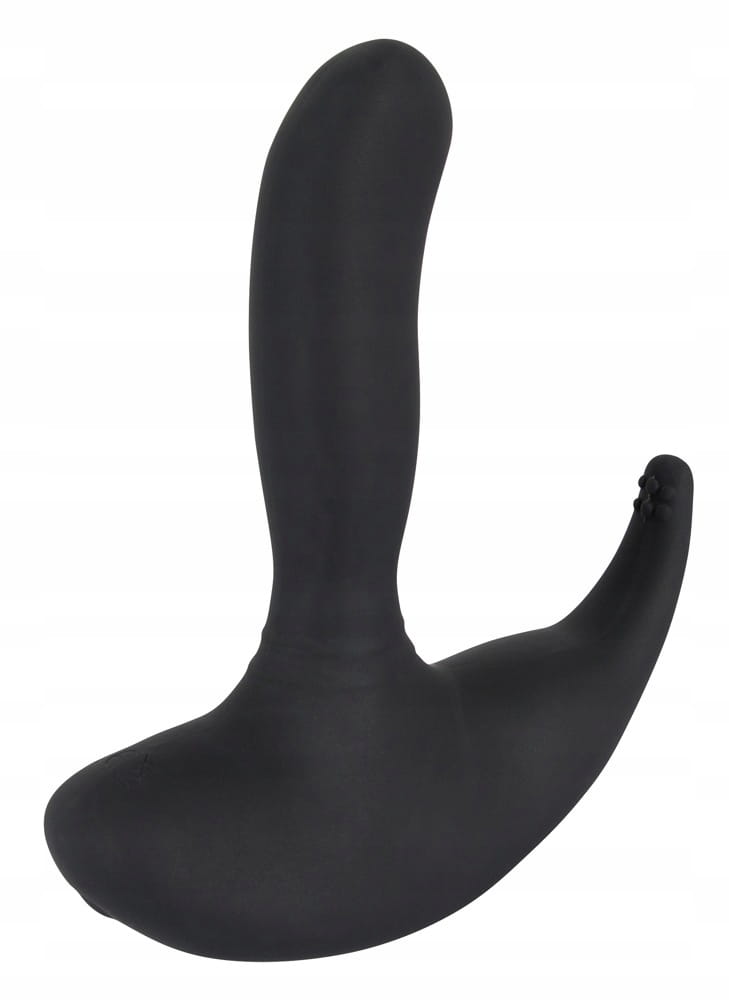 Ergonomicznie ukształtowany wibrator który jednocześnie stymuluje prostatę i krocze.