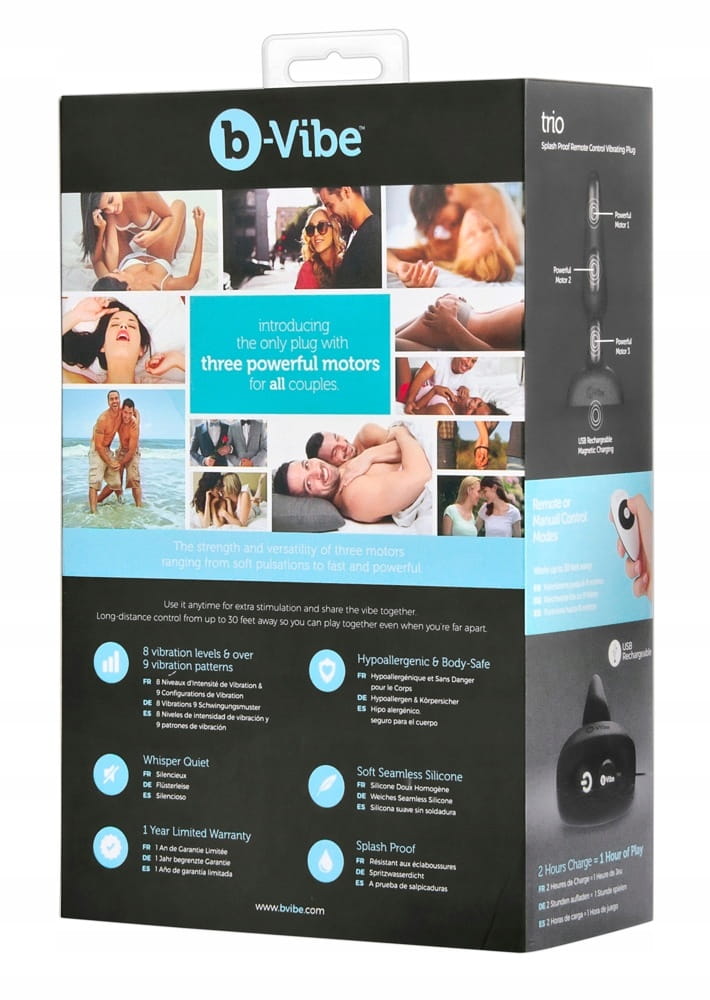 KOREK ANALNY B-VIBE TRIO ZDALNIE STEROWANY - 3 SILNIKI, 9 TRYBÓW WIBRACJI I 8 POZIOMÓW PRĘDKOŚCI