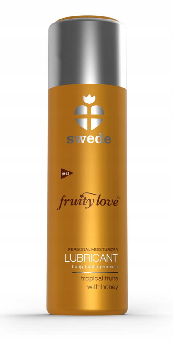 Unikalne projekty wymagają najnowocześniejszych formuł. Celem Swede było opracowanie całkowicie naturalnej i bezpiecznej formuły bez uszczerbku dla ich najważniejszych kryteriów: gładkiego i długotrwałego nawilżenia, miękkiego i delikatnego dla skóry, bezpiecznego dla prezerwatyw, niedrażniącego, o zrównoważonym pH, na bazie wody i łatwego do spłukania. SWEDE Fruity Love Tropical Fruits with Honey - to lubrykant na bazie wody, o formule, która się nie klei, nie pozostawia tłustego filmu na skórze i łatwo się zmywa. Produkt nie podrażnia błon śluzowych i nie zaburza naturalnego PH miejsc intymnych, dlatego śmiało można go stosować na co dzień. Składniki produktu są w pełni jadalne, zatem stosowanie go podczas seksu oralnego jest świetnym pomysłem. Smak owoców tropikalnych z nutą słodkiego miodu tylko wzmocni doznania i pobudzi zmysły, co sprawi, że zbliżenie będzie jeszcze przyjemniejsze Formuła jest bezpieczna dla prezerwatyw i może być używana ze wszystkimi zabawkami erotycznymi. Najważniejsze zalety :