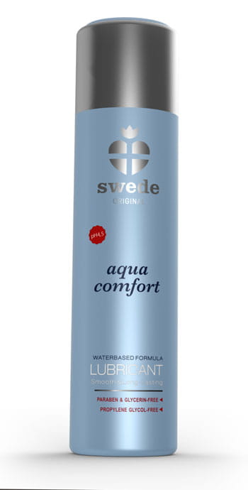 Lubrykant Aqua Comfort to doskonała i wyjątkowa formuła na bazie wody, która zapewnia doskonałe nieklejące i długotrwałe nawilżenie, a po użyciu nie pozostawia śladów na skórze. Formuła nie zawiera parabenów, gliceryny i glikolu propylenowego, które zwykle znajdują się w konwencjonalnych lubrykantach na bazie wody. Wiadomo, że parabeny i glikol propylenowy działają drażniąco, powodując niepożądane reakcje u wielu kobiet. Gliceryna to alkohol cukrowy, który zapewnia dobre środowisko dla Candida albicans, najczęstszego organizmu grzybiczego odpowiedzialnego za zakażenia drożdżakowe pochwy. Swede obniżyło pH do 4,5, co jest średnią wartością pH w pochwie. Formuła jest bezpieczna dla prezerwatyw i może być używana ze wszystkimi zabawkami erotycznymi. Najważniejsze zalety :