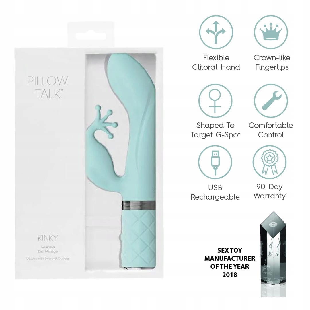Co wyróżnia Pillow Talk Kinky ? Wibrator Kinky łączy funkcjonalność z prawdziwą elegancją. Jego krzywe, dostosowane do kobiecej anatomii, zapewniają intensywną stymulację głębokimi, drżącymi wibracjami. Prawdziwą atrakcją jest stymulator łechtaczki w kształcie korony z 4 miękkimi zębami, która daje majestatyczne chwile przyjemności dla łechtaczki. Dzięki kryształowi Swarovski® jest prawdziwym klejnotem w Twojej kolekcji zabawek !