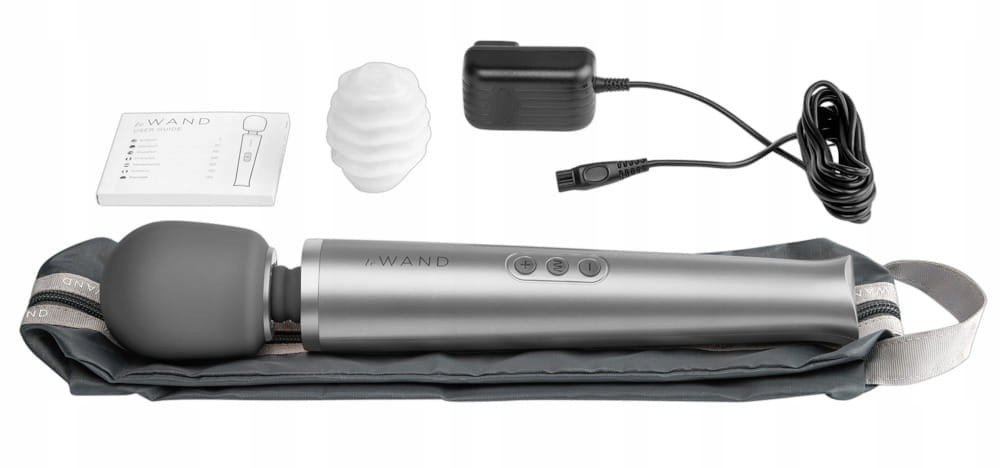 Potęga stymulacji - wydajny masażer do masażu całego ciała i punktowej stymulacji łechtaczki. Masażery typu wand to chyba najmocniejsze akcesoria do stymulacji łechtaczki, a Le Wand jest wśród nich prawdziwym królem ! Jest to model ładowany z sieci, przez co oferuje bardzo dużą moc stymulacji, ale jednocześnie nie sprawia problemów z przeszkadzającym przewodem, jak w przypadku wszystkich masażerów sieciowych. Silna, przenikająca na wskroś rozkosz podawana jest przez Le Wand w sposób wygodny, pełny komfortu i dający możliwość skupienia się na przyjemności. A do tego dokupić można jeszcze specjalne nakładki, by zwiększyć różnorodność skali doznań. Jego duża, gładka główka wibruje z dużą prędkością, a aksamitnie miękki i gładki materiał silikonu medycznego przylegając do łechtaczki i warg sromowych dosłownie obsypuje je przyjemnością - na tyle intensywną, że sugerujemy nie próbować użycia masażera bez środków nawilżających na bazie wody. Główka masażera Le Wand jest wyginana, więc możliwa jest stymulacja w zasadzie w każdej pozycji, nieważne czy będzie to podczas gry wstępnej, masturbacji czy seksu. Duża, wygodna rączka daje odpowiedni zasięg, a elastyczność główki pozwoli na komfortowe dotarcie do łechtaczki. Masażer oferuje aż 20 trybów wibracji przy 10 prędkościach - to bardzo szeroka paleta możliwości, której różnorodność pozwoli każdej kobiecie na wiele kombinacji sposobu na dojście do orgazmu. A ten niechybnie nastąpi, ponieważ siła pieszczot, jakie uderzą w klitoris, jest ogromna ! Ładowanie Le Wand odbywa się za pomocą dołączonego do opakowania kabla USB z kilkoma końcówkami. Czas pracy naładowanej baterii wynosi do 3 godzin ( 3 godziny ładowania ).