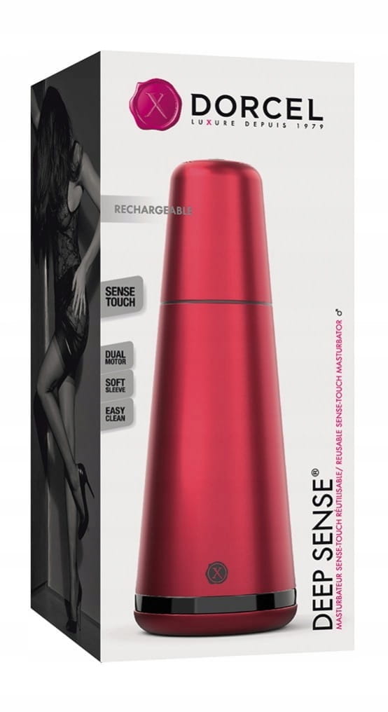 11 rodzajów wibracji z trybem „Sense Touch” - masturbator Deep Sense zapewni Ci doznania symulujące prawdziwy stosunek ! Dzięki licznym wypustkom i prążkom w jego wnętrzu, stymulacja będzie intensywna i podniecająca. Masturbator Deep Sense to najnowszy produkt uznanej francuskiej marki Dorcel. Odkryj na nowo przyjemność z masturbacji dzięki 11 trybom wibracji. Dzięki trybowi „Sense Touch” zmieniasz wibracje za jednym dotknięciem. Wyposażony w 2 silniki i 3 czujniki w technologii „Sense Touch”, ten masturbator to obietnica przyjemności. Deep Sense łączy w sobie design i wydajność. Matowa czerwień nadaje obudowie luksusowe wykończenie. Mógłby dzięki temu uchodzić prawie za designerski przedmiot na szafce nocnej, nie dając podstawy do podejrzeń, że jest to w rzeczywistości strasznie skuteczny masturbator. Wreszcie, jest to mały klejnot technologii wyposażony w funkcję „Sense Touch” - dotykowe sterowanie, które pozwala grać między 11 trybami wibracji dotykając obudowy masturbatora ! To od Ciebie zależy, czy podczas sesji znajdziesz odpowiednią prędkość, a nawet odpowiednią kombinację wibracji, aby cieszyć się wybuchowym orgazmem. Nie ma potrzeby używania przycisków - wystarczy zmienić intensywność, lub przełączać się między wibracjami, naciskając bezpośrednio na obudowę masturbatora „Deep Sense”. Dzięki tej funkcji obsługa gadżetu jest prosta i nieskomplikowana, a Ty możesz skoncentrować się na przyjemności, nie czekając, aż zrozumiesz, jak to działa ! Podsumowanie :