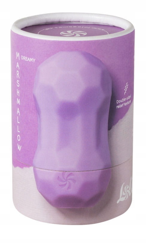 Masturbator Dreamy z kolekcji Marshmallow ma dwustronną powierzchnię z różnorodnymi reliefami. Wykonany z elastycznego i aksamitnie miękkiego materiału, doskonale się rozciąga i pasuje do każdego rozmiaru penisa. Po użyciu spłucz w ciepłej wodzie, osusz i posyp pudrem do zabawek erotycznych. Używać tylko lubrykantów na bazie wody Zapakowany w kartonową tubę Kolor: lawendowy Materiał: TPE Wymiary: