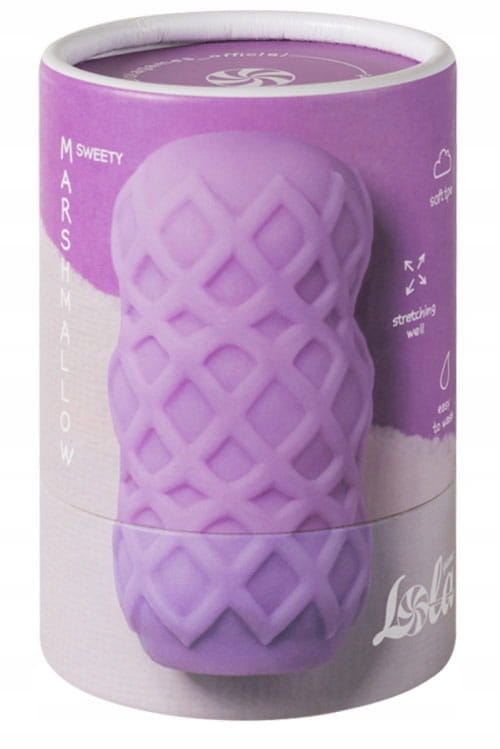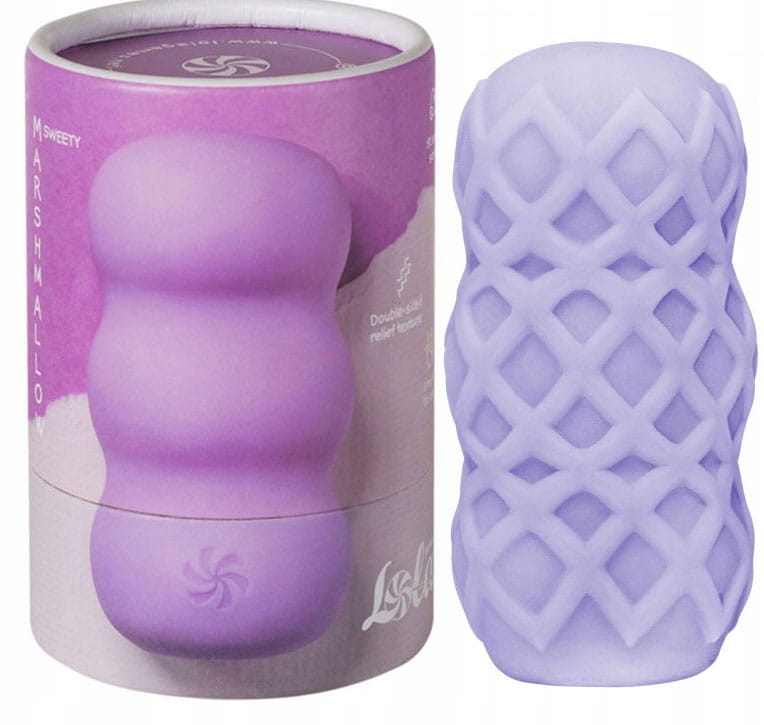 Masturbator Sweety z kolekcji Marshmallow ma dwustronną powierzchnię z różnorodnymi reliefami. Wykonany z elastycznego i aksamitnie miękkiego materiału, doskonale się rozciąga i pasuje do każdego rozmiaru penisa. Po użyciu spłucz w ciepłej wodzie, osusz i posyp pudrem do zabawek erotycznych. Używać tylko lubrykantów na bazie wody Zapakowany w kartonową tubę Kolor: lawendowy Materiał: TPE Wymiary: