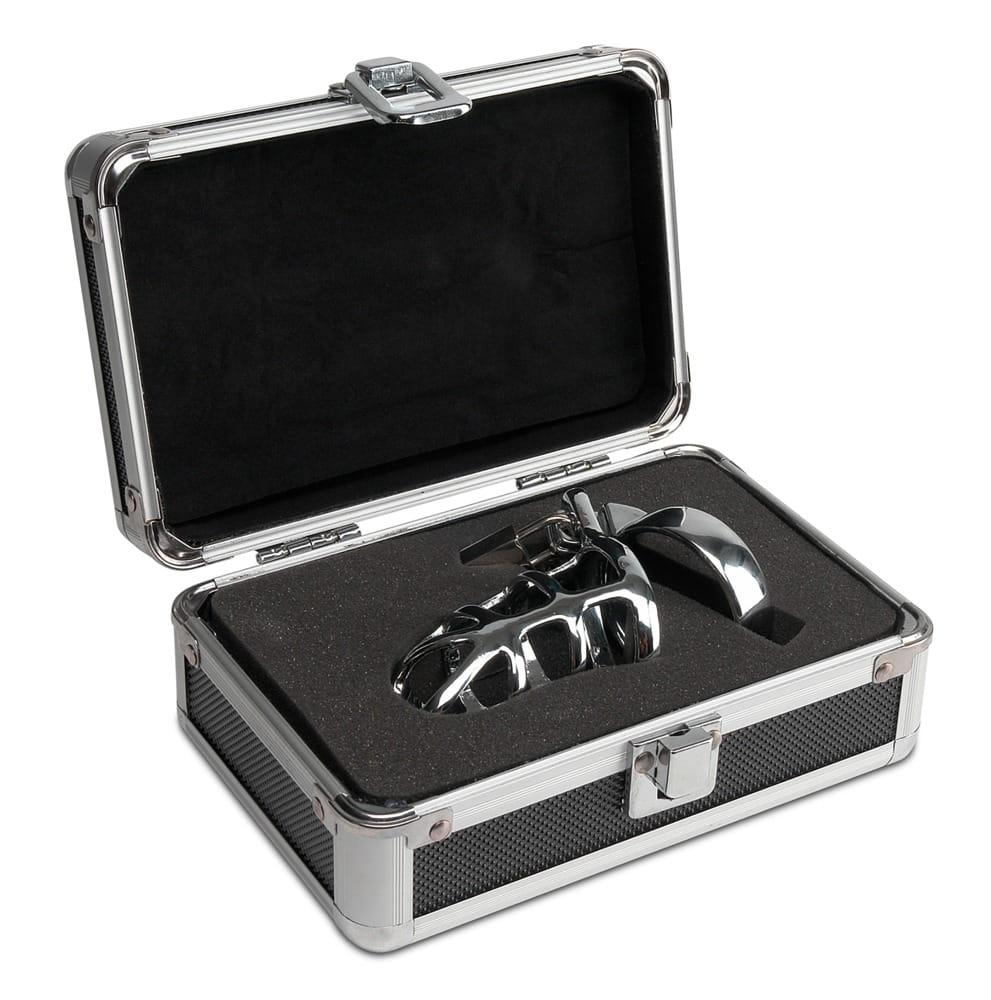 Ukaraj swojego Niewolnika, kiedy jego penis źle się zachowuje za pomocą metalowego pasa cnoty. Wykonany z wysokopolerowanej stali i zabezpieczony zamkiem i kluczem - błyszcząca chromowana klatka czystości utrzyma Twojego niegrzecznego kutasa za kratkami tak długo, dopóki nie zdecydujecie się go uwolnić. Odważysz się wypróbować pas cnoty, poddać się całkowicie i tylko obserwować, jak podniecony penis walczy wewnątrz więziennej klatki ? Bez względu na to, jak bardzo się podnieca, zakrzywiony stalowy kształt klatki uniemożliwia Twojemu penisowi na wzniesienie się.. Trzymasz w ręku klucz do przyjemności, więc zanim go uwolnisz upewnij się, że na pewno zrobi to, czego chcesz ! Ta klatka czystości na penisa nie tylko świetnie wygląda, ale także zapewnia niepowtarzalny komfort noszenia w czasie przymusowej abstynencji! Idealnie dopasowana do męskiej anatomii, jest łatwa do zakładania i zdejmowania: penisa umieszcza się w klatce a wokół jąder zakłada się stalowy pierścień. Klatkę można oczywiście zamknąć za pomocą dołączonego zamka i klucza. Jednak użytkownik może bez problemu oddawać mocz i brać prysznic lub kąpać się. Całość zapakowana w eleganckie, wysokiej jakości pudełko. Kolor: srebrny Materiał: Metal Długość: 12 cm Średnica 4,5 cm Waga: 141,5 g