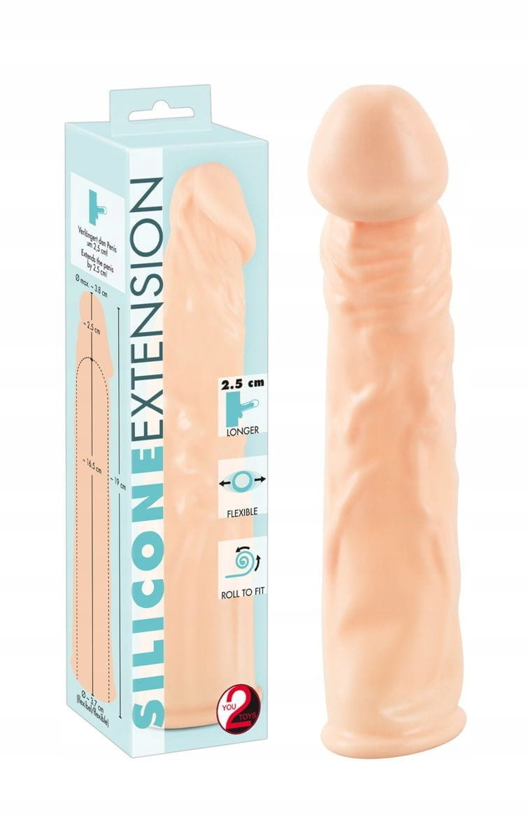 Niezwykle miękka i przyjemnie elastyczna ! Przedłużająca penisa nakładka wykonany z niezwykle miękkiego i elastycznego materiału o wyjątkowo jedwabistej fakturze - silikonu medycznego. Super miękka i przyjemnie rozciągliwa. Posiada realistycznie odwzorowaną żołądź penisa i wypukłe żyłki. Przedłuży Twojego penisa o 2,5 cm. Jej elastyczność zapewnia bardzo ścisłe dopasowanie do rozmiaru Twojego członka, co jednocześnie wpływa wspomagająco na utrzymanie jego wspaniałej i twardej erekcji. Właściwości te nie tracą siły nawet przy wielokrotnym stosowaniu. Wypróbuj ! Nakładka Silicone Extension to prawdziwa alternatywa dla tradycyjnego pierścienia na penisa - wraz z nią doświadczasz seksu w zupełnie nowym wymiarze. Po naciągnięciu błyskawicznie wydłuża penis o 2,5 cm. Charakterystyczne żyłkowanie stymuluje każdy otwór miłosny. Ciasne dopasowanie zapewnia dłużej trwający stosunek i opóźniony wytrysk. Dzięki jedwabistej fakturze nakładka pozostawia aksamitny efekt na skórze. Więcej zabawy podczas seksu ! Lubrykant na bazie wody ułatwi założenie i dopasowanie Silicone Extension. Nakładka nie zastępuje prezerwatywy ! Antykoncepcja, podobnie jak ochrona przed chorobami wenerycznymi, nie jest możliwa dzięki nakładkom na penisa. Używaj wyłącznie lubrykantów na bazie wody.