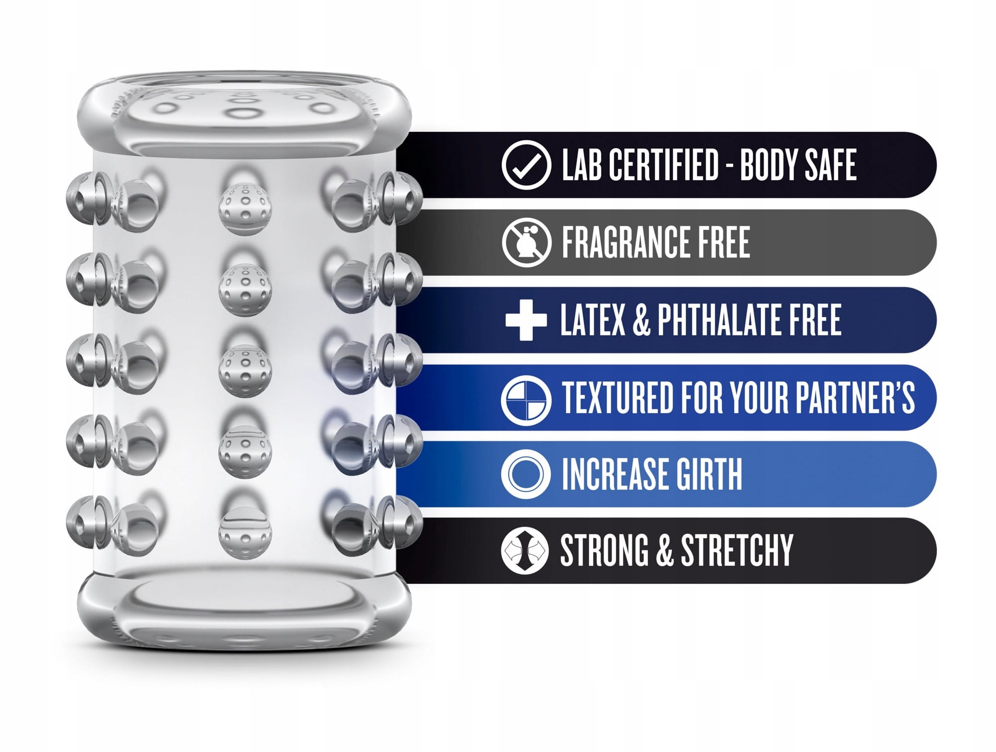Elastyczna nakładka na penisa posiadająca liczne wypustki, które pobudzają partnerkę podczas stosunku. Dzięki temu bardzo wiele kobiet może osiągnąć wcześniej niemożliwą satysfakcję seksualną zakończoną fantastycznym orgazmem. Dzięki uciskowi nakładka Stay Hard Cock Sleeve skutecznie przedłuży czas trwania stosunku i poprawi jakość erekcji. Nakładka została wykonana z wysokiej jakości nietoksycznego materiału typu jelly, wolnego od dodatku szkodliwych ftalanów i uczulającego latexu, czyli w 100% bezpiecznego dla miejsc intymnych. Dodatkowo nakładka jest bardzo rozciągliwa - dopasuje się z łatwością do rozmiaru każdego członka.
