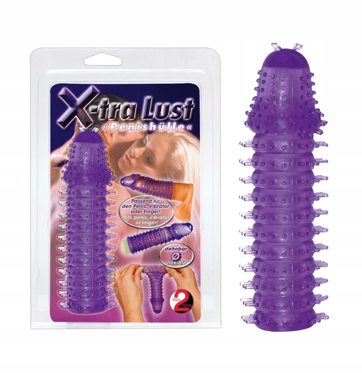 Interesujący dodatek dla Twojego penisa lub wibratora. Nakładka na penisa wykonana z fioletowego materiału typu jelly jest bardzo elastyczna i dlatego może być nakładana na każdego penisa i na każdy wibrator. X-tra Lust usiana jest na całej swej długości niezliczonej ilości stymulującymi wypustkami które sprawiają, że gra wstępna staje się prawdziwą przyjemnością ! Kolczasta głowa i miękkie wypustki zapewniają niesamowitą stymulację.