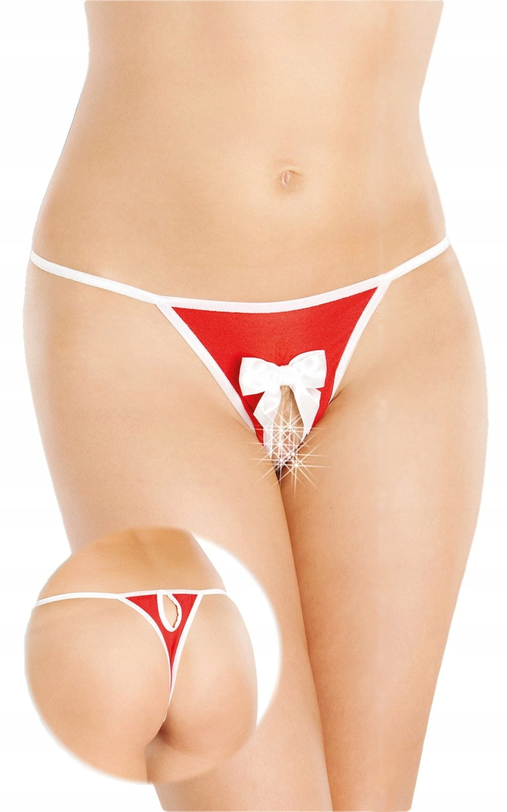 Sexowne, otwarte stringi z zalotną kokardką.