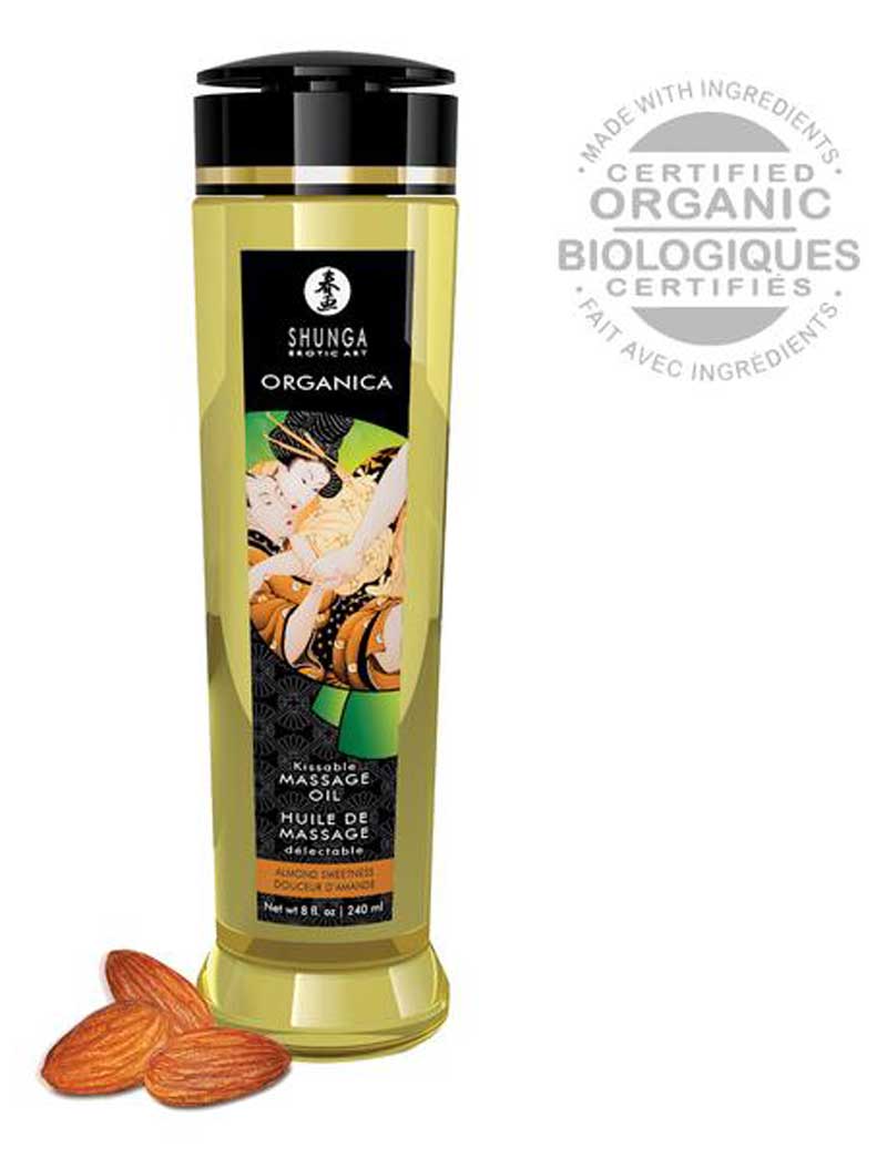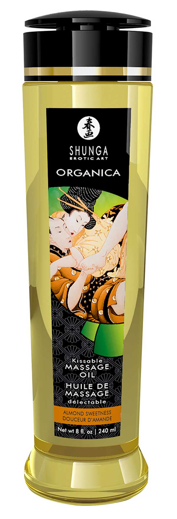 Organiczny olejek Organica o słodkim, migdałowym zapachu jest przeznaczony do masażu erotycznego. W jego skład wchodzą jedynie w 100% naturalne, zimno-tłoczone oleje. Produkt tworzy na skórze przyjemny poślizg, nie pozostawiając tłustego filmu, nie zatyka porów i nie zawiera olejów mineralnych, ani pochodzenia zwierzęcego. Shunga to marka, która cieszy się ogromną popularnością na rynku erotycznym. Specjalizuje się w produkcji najwyższej jakości produktów uatrakcyjniających nasze życie seksualne. Ich oferta zawiera zarówno zmysłowo pachnące olejki i świece do masażu, lubrykanty na bazie naturalnych składników, a także specjalistyczne kosmetyki zwiększające wrażliwość miejsc intymnych. To co wyróżnia Shungę na rynku to fakt, że cały proces produkcyjny wszystkich artykułów Shungi odbywa się w Kanadzie. Oznacza to, ze cały proces wytwórczy, od momentu połączenia składników, poprzez umieszczenie ich w opakowaniach, aż po sprawdzenie ich jakości i wysyłka do klienta odbywa się w Kanadzie. Sposób użycia: Skład: Cold Pressed Sunflower Oil/Huile de tournesol pressée à froid (Helianthus Annuus Seed Oil)*, Rapeseed Oil/Huile de colza (Brassica Campestris Seed Oil)*, Grape Seed Oil/Huile de pépin de raisin (Vitis Vinifera Seed Oil), Avocado Oil/Huile d’avocat (Persea Gratissima Oil), Sesame Oil/Huile de sesame (Sesamum Indicum Seed Oil), Flavor/Saveur (Aroma), Natural Vitamin E/Vitamine E naturelle (Tocopherol), Benzyl Alcohol. *Certified Organic/Certifiés biologiques. Opakowanie 240 ml