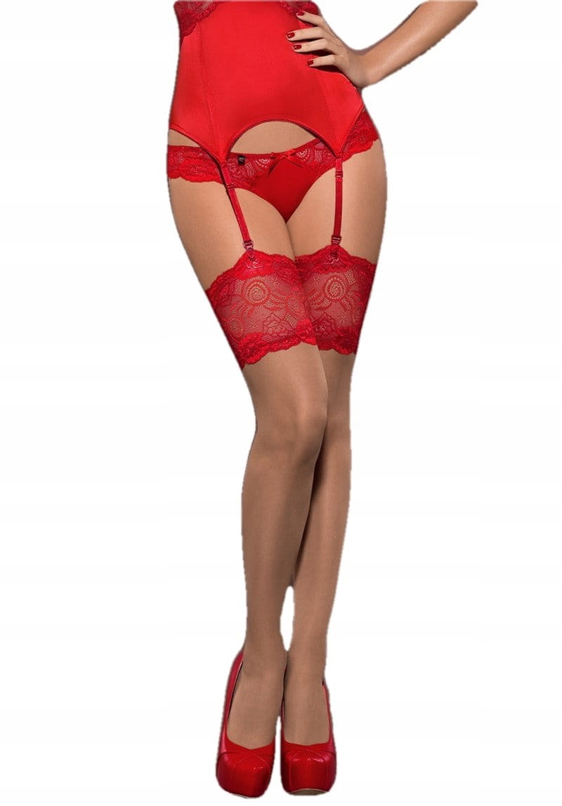 Piękne pończochy SECRED kuszące szeroką czerwoną koronką !