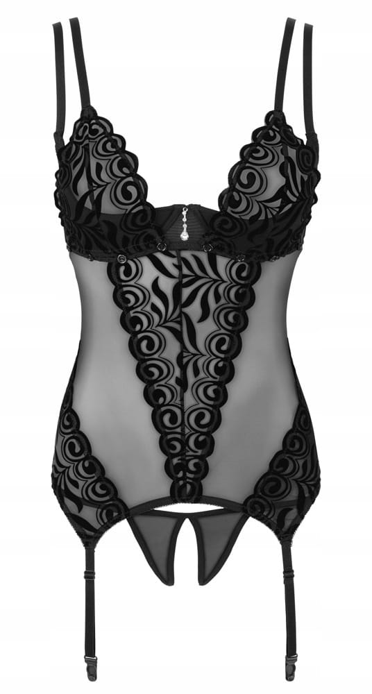 Potrzebujesz do tego właśnie taki erotyczny zestaw bielizny, który można nosić na dwa sposoby ! Czarny i elegancki gorset z paskami do pończoch oraz całkowicie otwarte stringi. Możesz uzyskać w nim naprawdę oszałamiający dekolt w mgnieniu oka !