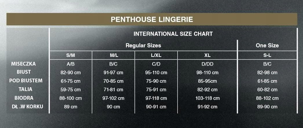Odkryj wyjątkową kolekcję bielizny Penthouse, zaprojektowaną z myślą o uczczeniu Twojej kobiecości ! Bądź inna, bądź pewna siebie, wyróżniaj się. Bez względu na to, jaki styl wybierzesz dzisiaj, obiecujemy, że z tą bielizną każdy dzień będzie wyjątkową okazją. Poznaj najwyższy luksus ! W tym seksownym i jednocześnie eleganckim bodystocking z otwartym krokiem zrobisz imponujące wrażenie. Bielizna wykonana z cienkiej i miękkiej siateczki o drobnych oczkach otula Twoje krągłości. Koronkowe detale z przodu i z tyłu przyciągają uwagę, tworząc coś w rodzaju dekoltu. Szyję ozdabia koronkowa stójka nadając całości elegancki akcent. Widok z tyłu jest naprawdę uwodzicielski. Dzięki otwartemu krokowi to gorące bodystocking można nosić również podczas seksu ! Bodystocking należy prać ręcznie. Nie suszyć w suszarce. Nie prasować. Osłony na sutki nie wchodzą w skład zestawu. Zmysłowa bielizna Penthouse jest dostępna w eleganckim opakowaniu, całkowicie pozbawionym plastiku i ekologicznym. Gustowne złote wykończenie sprawia, że pudełko z bielizną doskonale nadaje się na prezent. Ciesz się tą seksowną, wysokiej jakości linią stworzoną specjalnie dla Ciebie ! Ciesz się byciem dziewczyną z Penthouse !