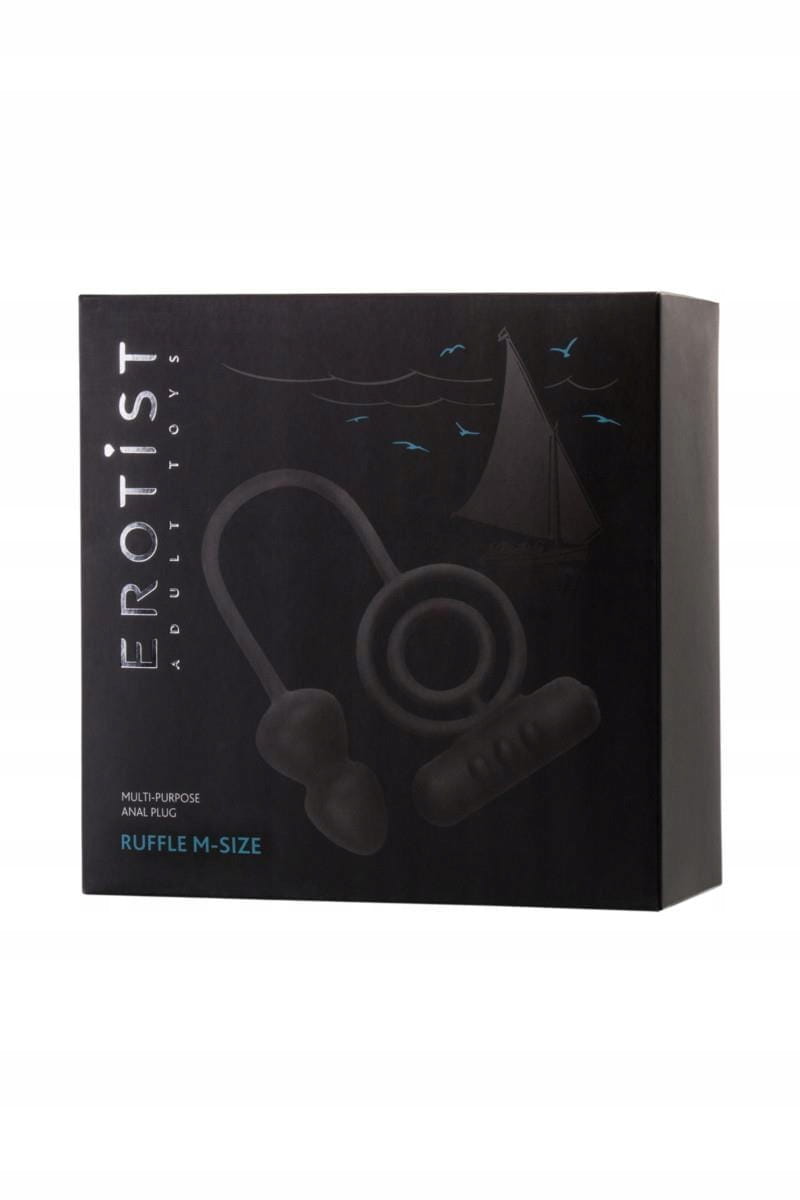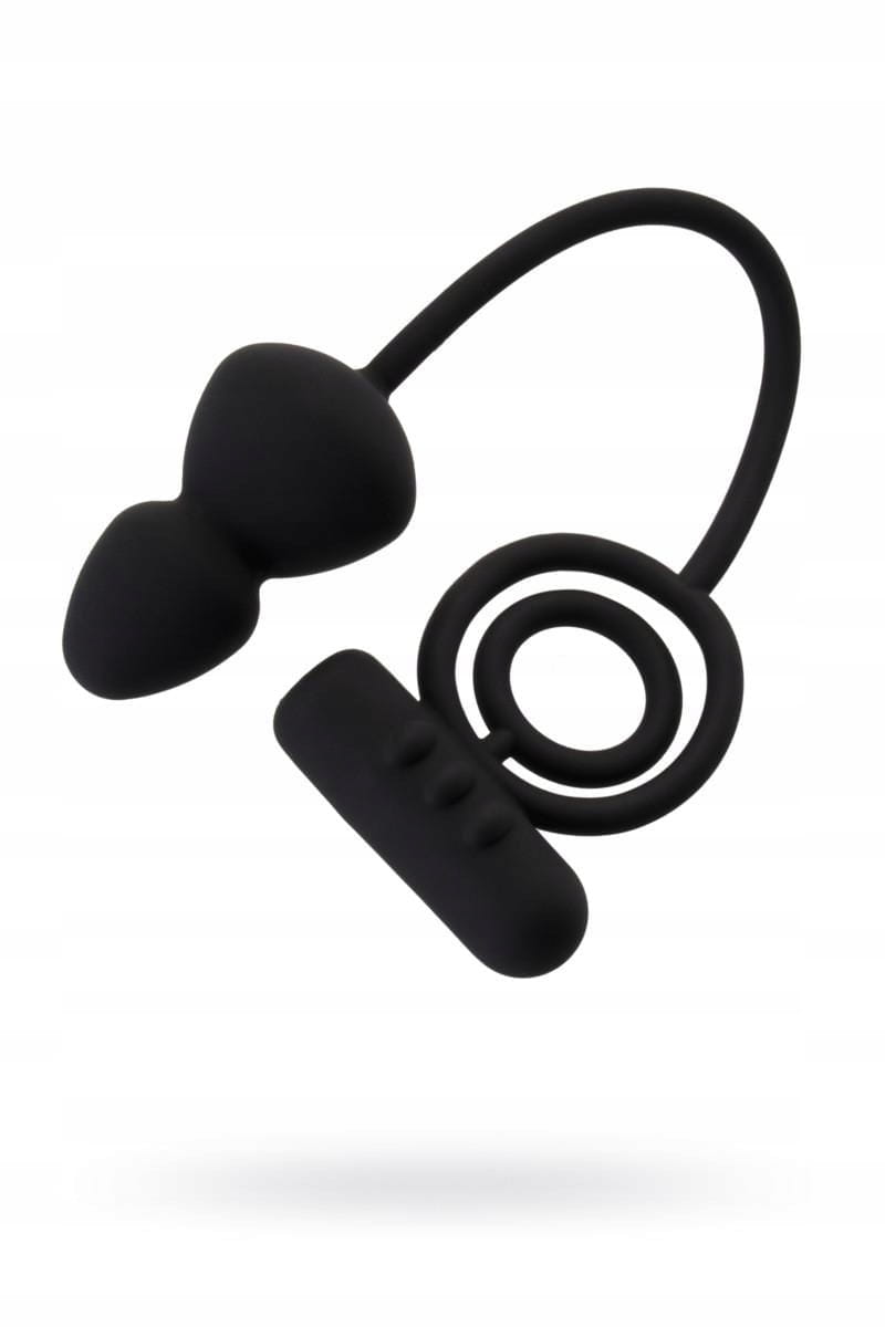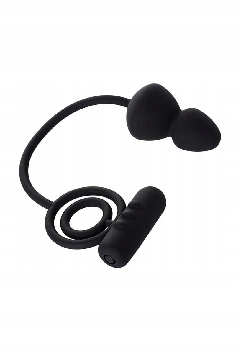 WIBRUJĄCY PIERŚCIEŃ NA PENISA I JĄDRA Z KORKIEM ANALNYM RUFFLE M-SIZE