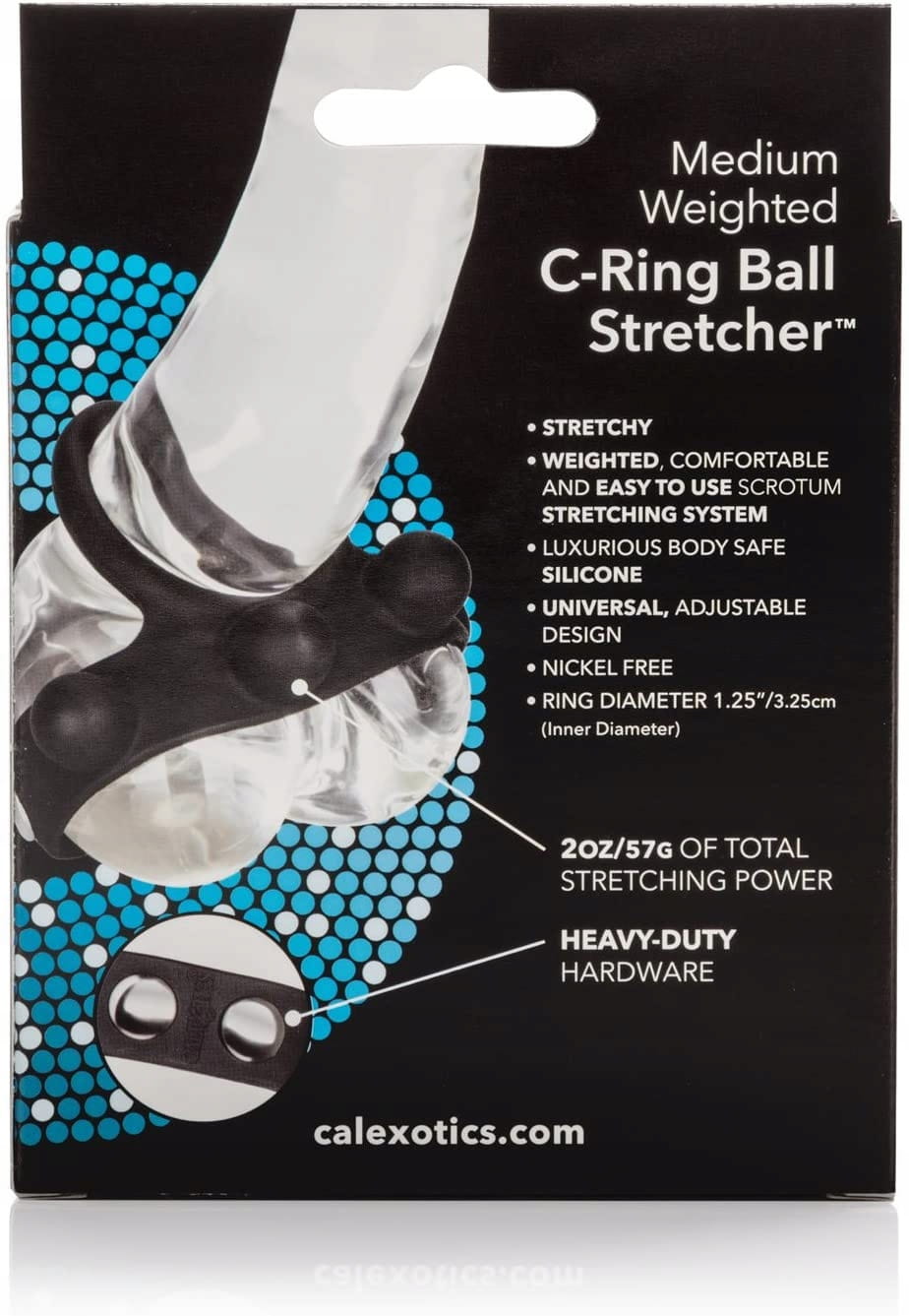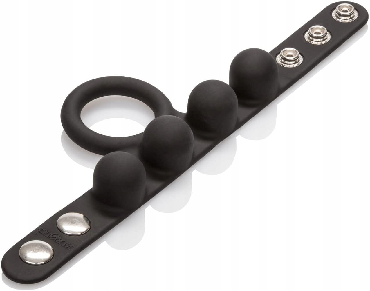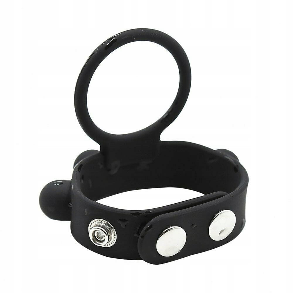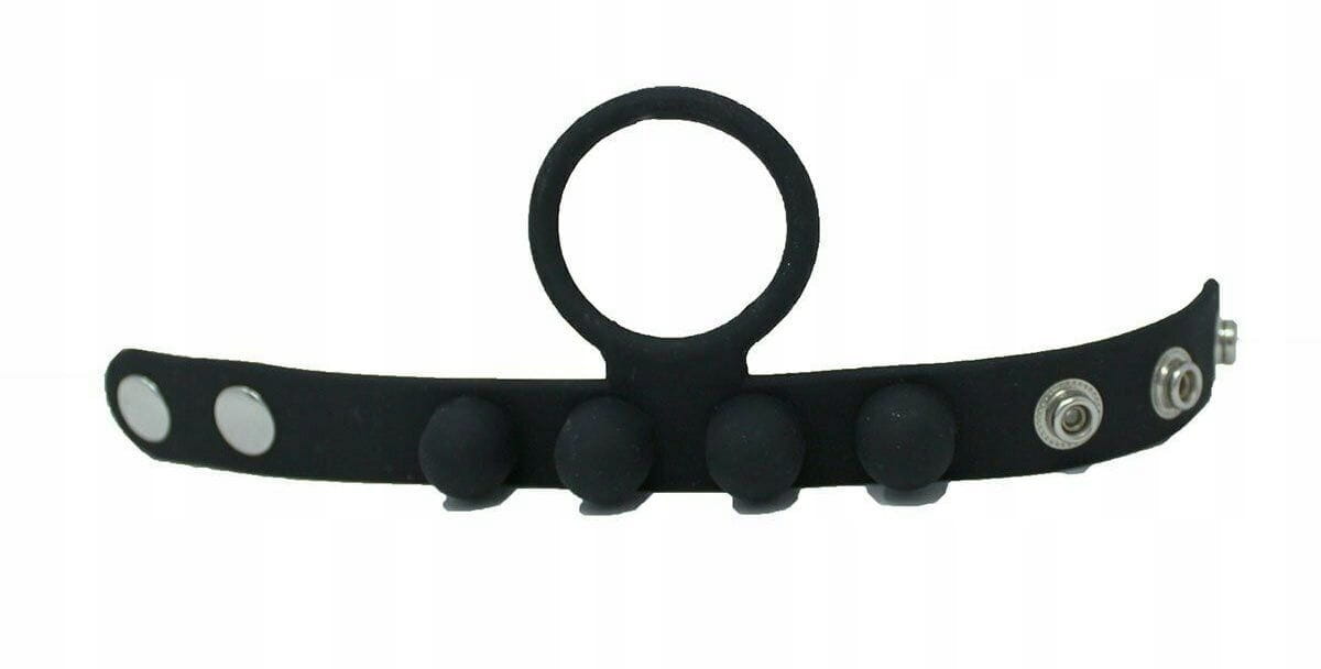 PIERŚCIEŃ NA PENISA WEIGHTED C RING BALL STRETCHER M - WAGA 57 GRAMWyjątkowy, podwójny pierścień erekcyjny na penisa z dodatkowym obciążeniem na jądra C-Ring Ball Stretcher Medium zapewni Ci jeszcze mocniejsze doznania ! Jedna część pierścienia jest zakładana na penisa, natomiast drugą zapina się na jądrach, co pozwala na znaczne przedłużenie trwania stosunku. Zapinana część posiada ukryte w dużych wypustkach obciążniki o całkowitej wadze 57 g. Dodatkowo jest ona regulowana, co pozwala na dopasowanie mocy ucisku na jądrach. Użycie pierścienia może zwiększyć siłę Twojej erekcji, oraz pomaga powstrzymać przedwczesny wytrysk. Zdobądź wsparcie, którego potrzebujesz, aby uzyskać super mocny orgazm przedłużając Waszą miłosną grę. Wypustki na pierścieniu dodatkowo stymulują łechtaczkę i waginę Partnerki. Pierścień jest elastyczny i bardzo dobrze dopasowuje się do obwodu każdego penisa dzięki zapinaniu na napy. Gadżet wykonany jest z aksamitnie gładkiego, w pełni bezpiecznego dla ciała silikonu medycznego, który po każdym użyciu wystarczy umyć ciepłą wodą z dodatkiem łagodnego mydła. Materiał : Silikon medyczny, żelazo, bez ftalanów Kolor : czarny Wymiary :