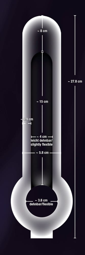 Teraz możesz więcej ! Przezroczysta nakładka na penisa z pierścieniem na jądra, która jednocześnie wydłuży aż o 8 cm (!) i pogrubi o ok. 2 cm Twojego penisa. Wyróżnia się solidną żołędzią, wypukłymi żyłkami i dużymi, stymulującymi wypustkami. Lekko elastyczny materiał nakładki, który szybko ogrzewa się do temperatury ciała, idealnie dopasuje się do penisa. Pierścień na mosznę również się rozciąga, co pozwala utrzymać nakładkę w prawidłowej pozycji. Nałóż na penisa trochę lubrykantu na bazie wody, aby ułatwić jej włożenie. Po stosunku nakładkę szybko oczyścisz przy pomocy niewielkiej ilości wody i delikatnego mydła. Do dezynfekcji można również użyć Toy Cleaner'a. Cóż, baw się dobrze ...