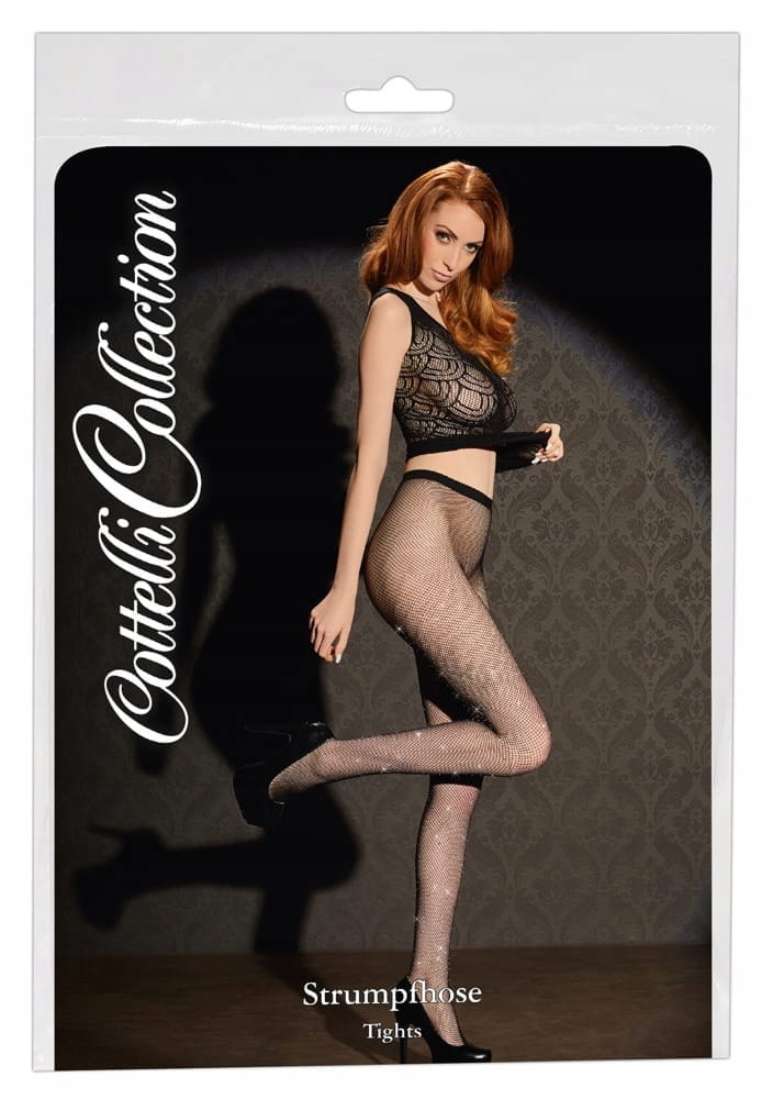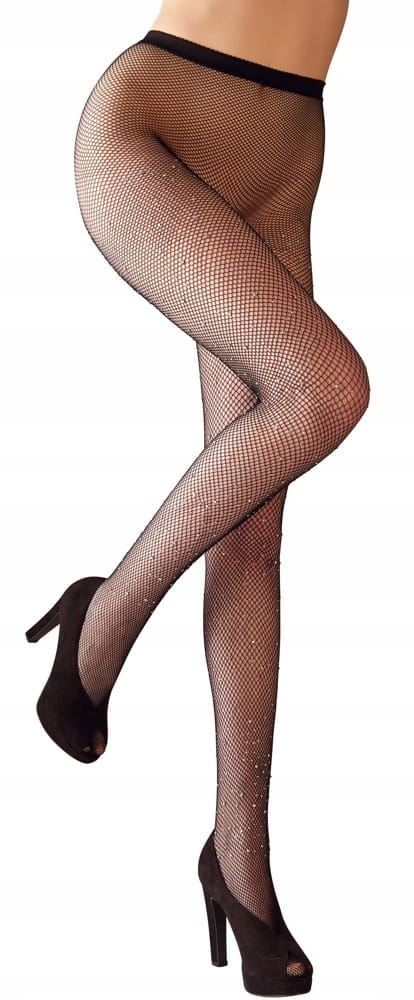 Zachwycające rajstopy kabaretki z błyszczącymi kryształkami o różnej wielkości. Elastyczny pas i wzmocniona część palcowa. Czarne rajstopy dają efekt glamour i są idealnym wyborem jako dodatku do każdego stroju imprezowego. Maksymalny komfort noszenia dzięki dodatku elastanu. Co wyróżnia te kabaretki ?