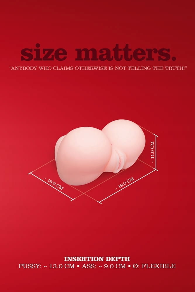 REALISTYCZNY MASTURBATOR FUCK ME TWERKING STYLE Masturbator w kolorze skóry z zachęcająco wypiętymi pośladkami. Ten pulchny i wypięty tyłeczek oferuje dla Ciebie 2 wspaniałe otwory miłości - wyraźnie i bardzo realistycznie odwzorowane wargi sromowe pochwy oraz ściśnięte wejście do odbytu. To bardzo ekscytujący widok ! Musisz podjąć trudną decyzję i zdecydować, czy wybierzesz penetrację waginalną czy może analną. Masturbator został wykonany z cyberskóry, także do złudzenia przypomina w dotyku ludzką skórę dając maksymalnie realistyczne odczucia wzrokowe i dotykowe - jakbyś kochał się z prawdziwą kobietą. Masturbator można używać bez pomocy rąk - masa 1,60 kg zapewnia, że masturbator leży pewnie na każdej powierzchni. Otwory zaprojektowane tak aby zapewnić zmysłowy opór podczas penetracji. Pochwa jest wyposażona w niezliczone guzki po wewnętrznej stronie, które dodatkowo stymulują, a kanał analny jest dodatkowo rowkowany. Masturbator posiada dodatkowo 2 otwory, w których można umieścić jajka wibrujące. Jajka nie są częścią zestawu - należy zakupić osobno.