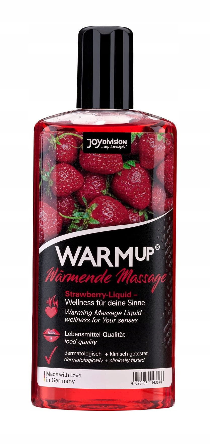 JoyDivision WARMup Strawberry to nietłusty olejek do masażu opracowany w celu zapewnienia niesamowitych wrażeń o zapachu słodkiej truskawki z magicznym efektem rozgrzewającym, który aktywowany jest podczas sesji masażu i zapewnia wszystkie rozkosze duchowej intymności podczas gry wstępnej. Jedwabiście gładki olejek do ciała w bardzo subtelny sposób pozwoli rozbudzić Wam żar w Waszych ciałach i zwiększy Wasze erotyczne doznania. Cechy produktu :